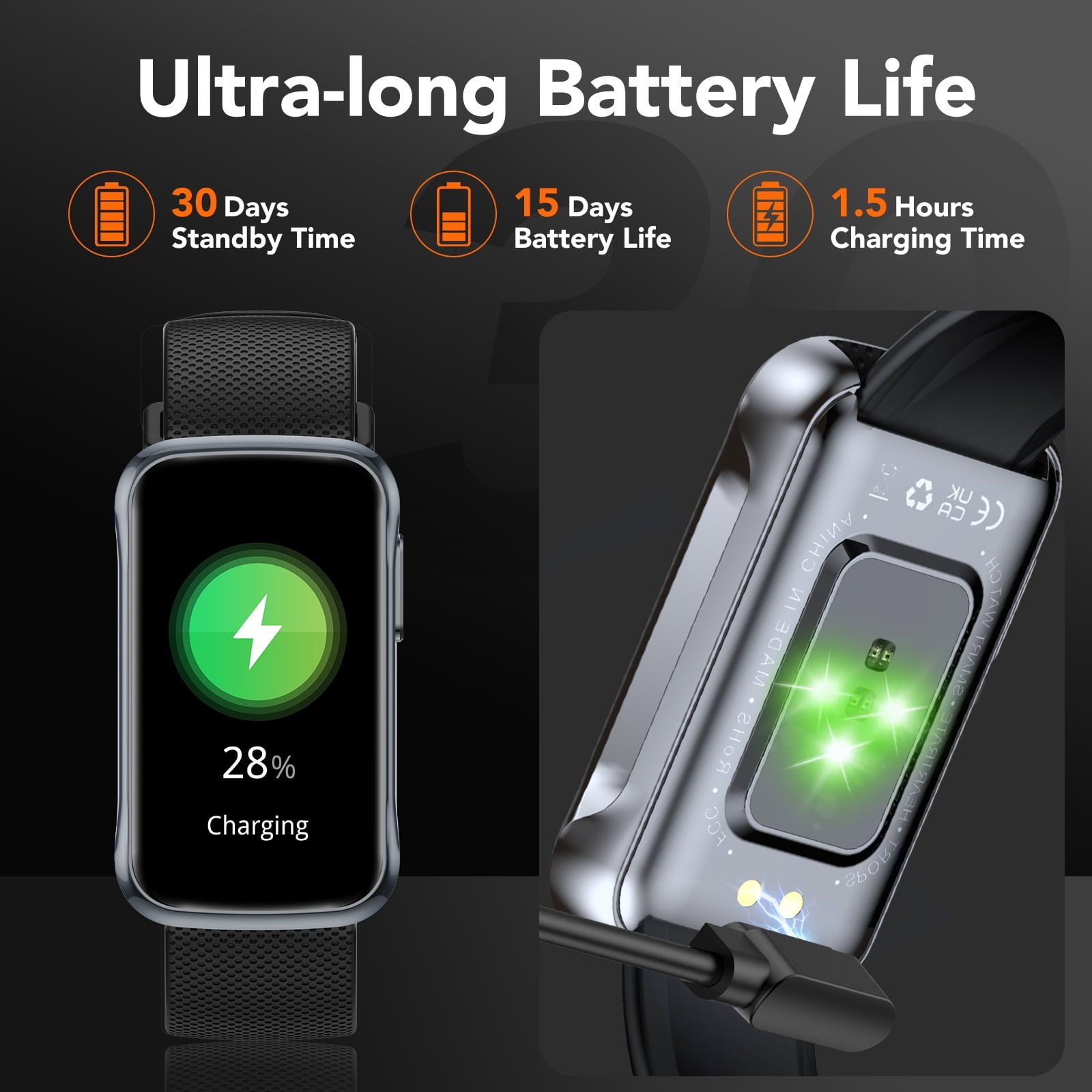 - Fast Charging and Long Life Experience:Using the magnetic USB cable included in the package, charging can be completed in 1.5-2 hours, and can be used continuously for fifteen days, up to 15 days, and can be used for 9 days under normal conditions.