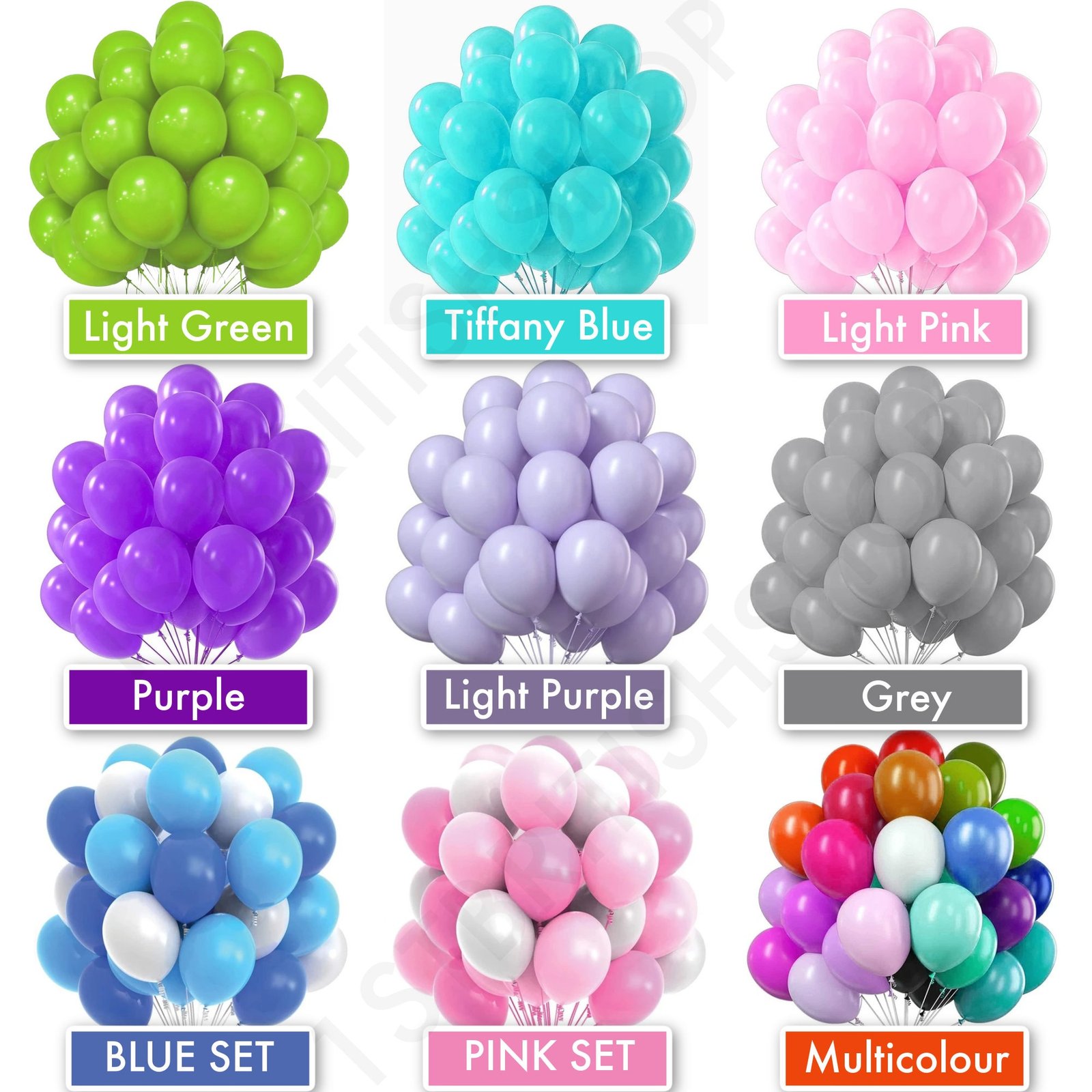 6 Balloons ,10 Balloons ,20 Balloons ,40 Balloons ,50 Balloons ,1 (SAMPLE BALLOON) |