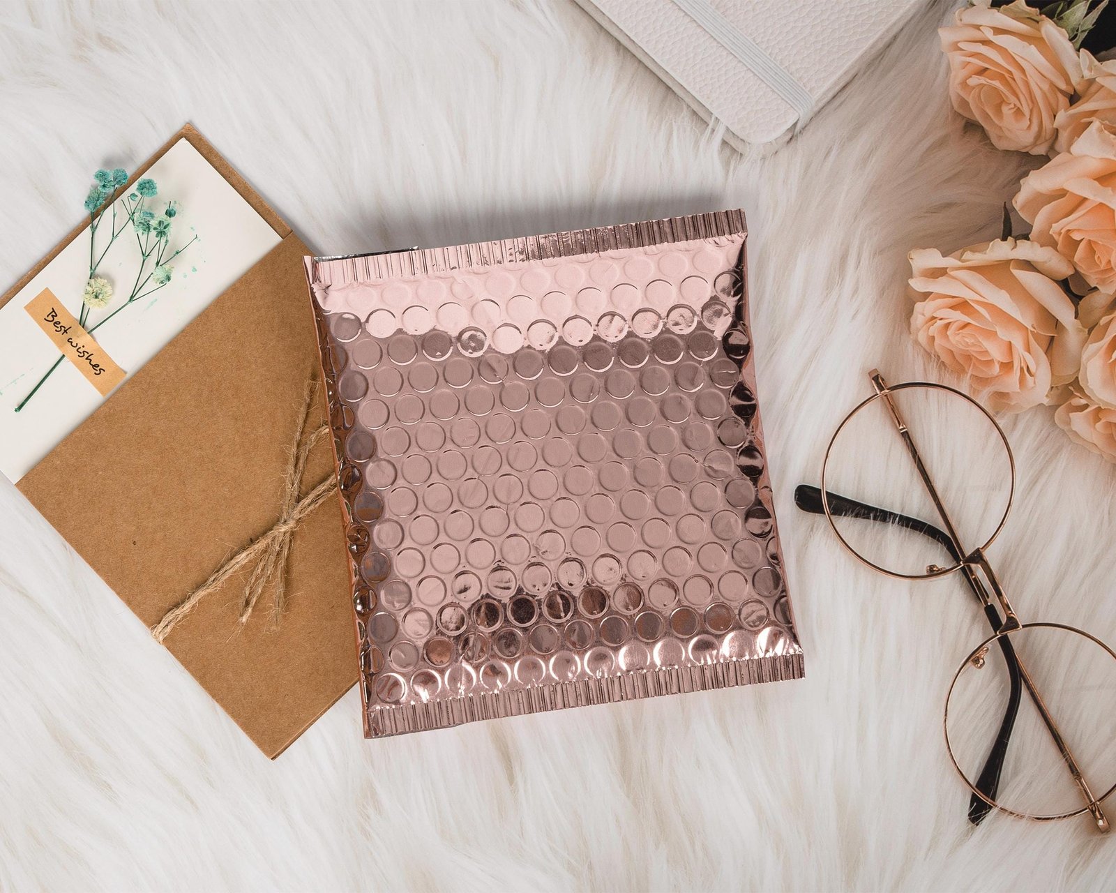 100pcs Rose Gold Bubble Mailers – Custom Glossy Air Bubble Bags with Logo, Self-Adhesive Waterproof Shipping Envelopes & Business Favors