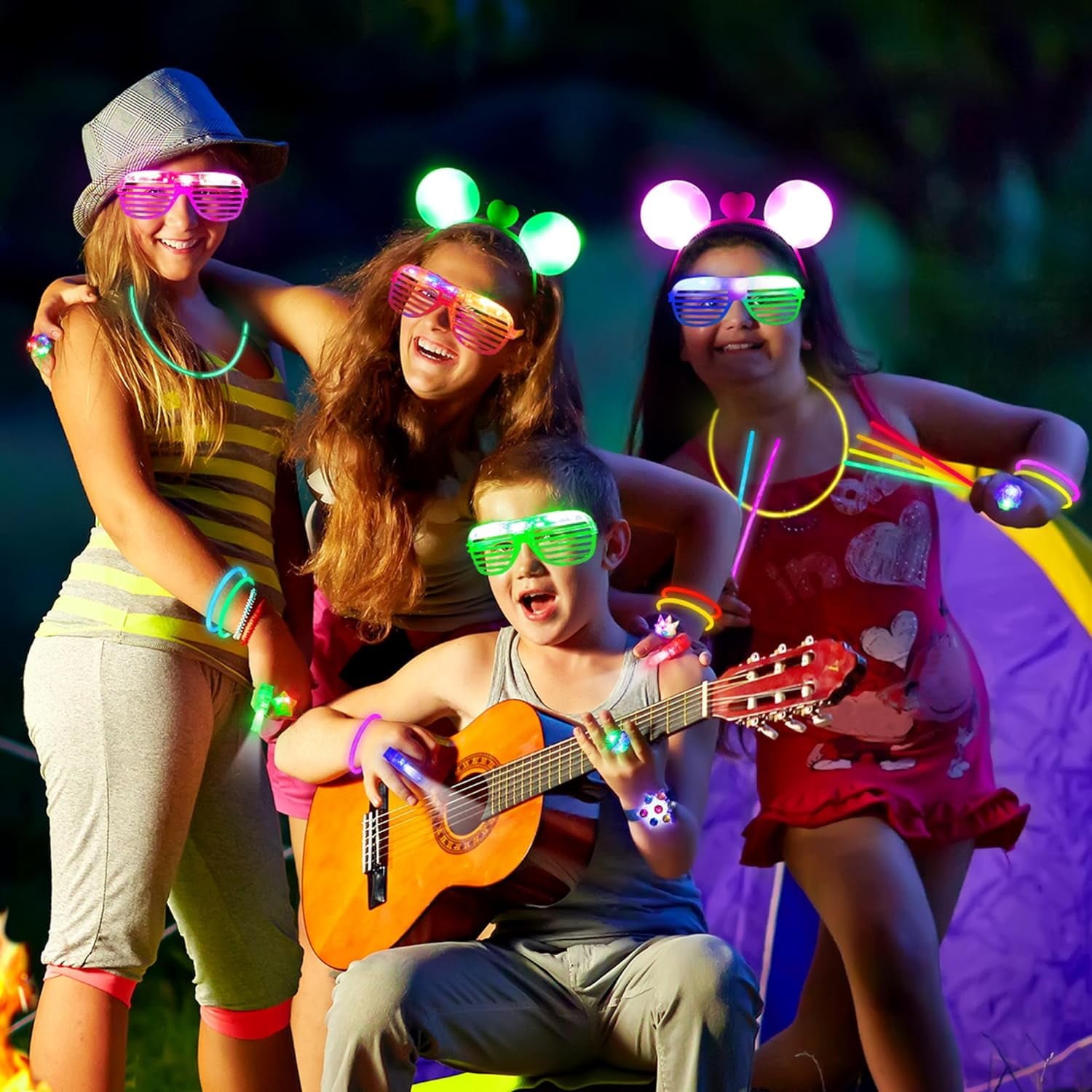 Include 50 glow sticks, 30 finger lights, 6 glow glasses, 6 light up spinner bracelets, 6 light up rings, and 5 hairbands. All batteries are included. These light up party favors are great for kids and adults to use to bring you an unforgettable party. Let’s light up your party in the dark with these glow party decorations and accessories.