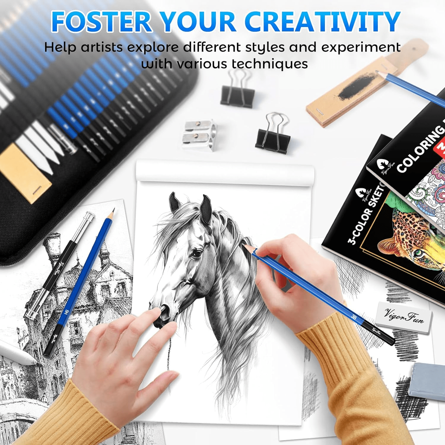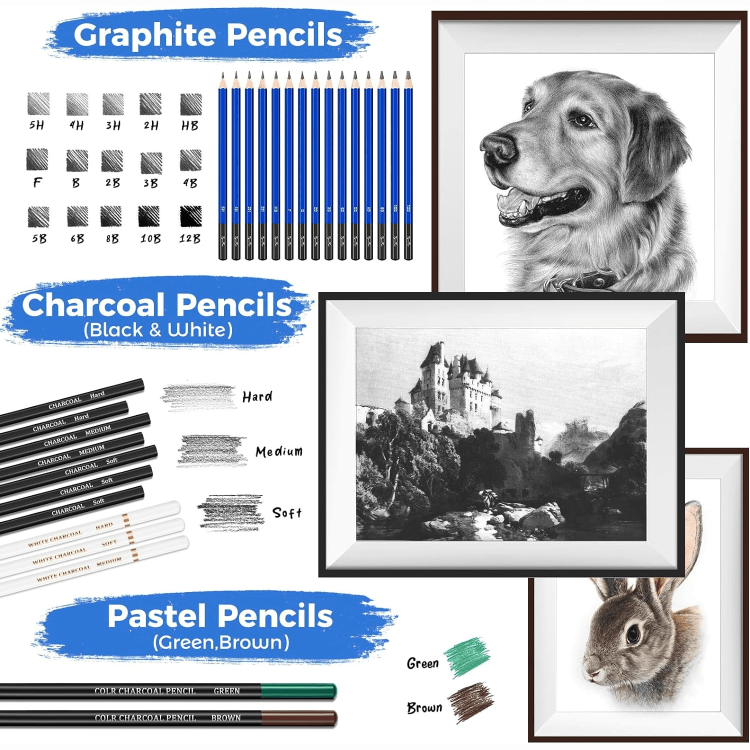 106 PCS Drawing Set Sketching Kit, Pro Art Supplies for Artists Adults Kids BeginnersBlack