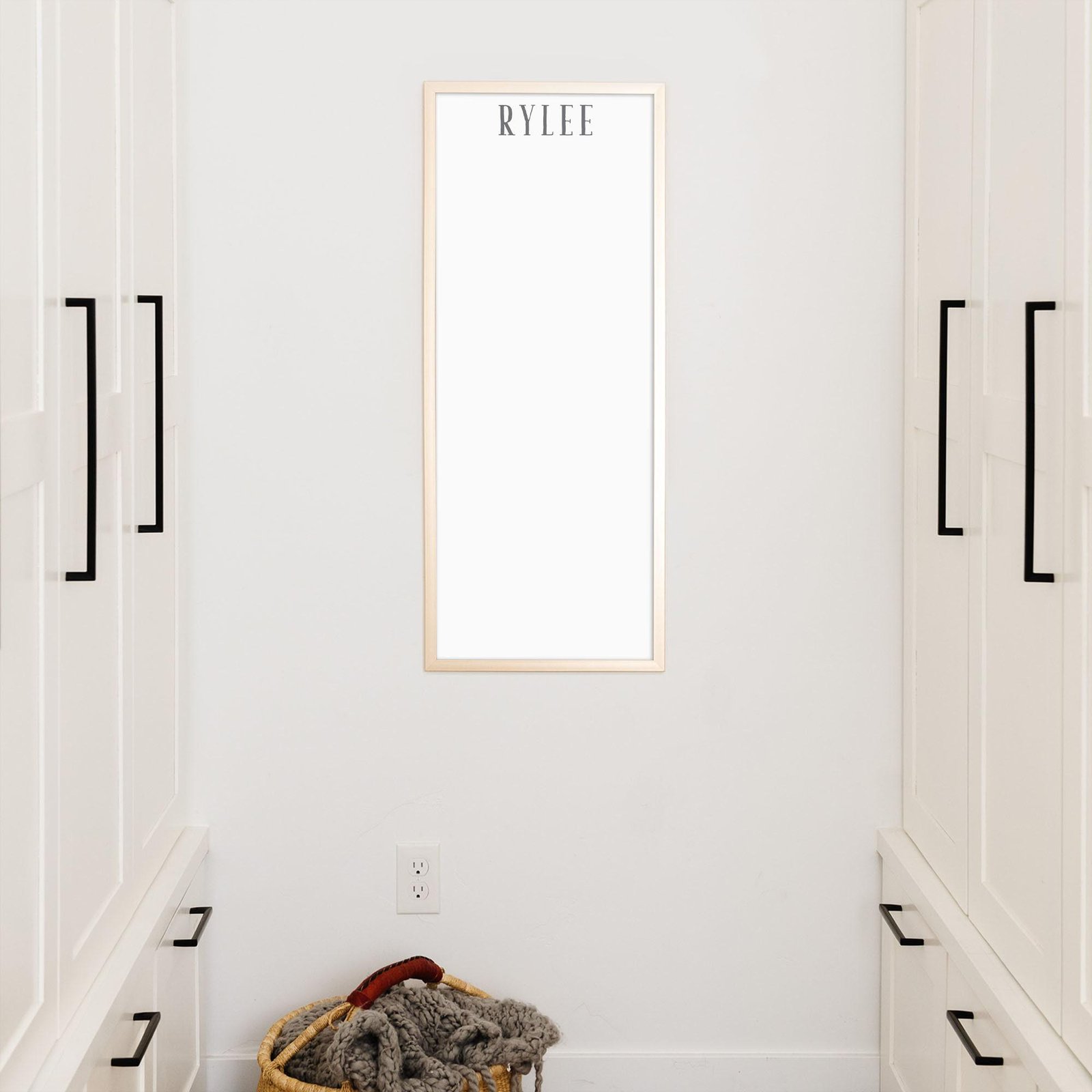 This 9×24 dry-erase board is the perfect memo board for your office, bedroom, or the perfect addition to your command center. This is a customized framed dry-erase whiteboard. Keep track of your notes, to dos, or leave nice notes for family members on the framed whiteboard – you have the option to order either one! It comes with a free custom/personalized title for the top of the memo board. They are the perfect size to go to the side of one of my 18×24 vertical calendars, or it can fit perfectly below a 24×36 vertical calendar just ask me for the horizontal version of this.