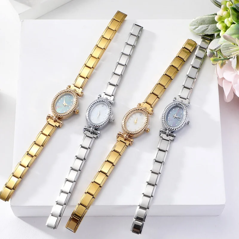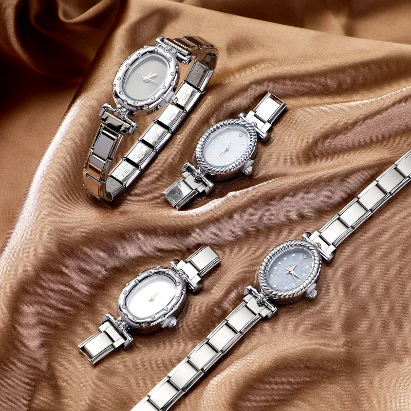 1PC Vintage 9MM DIY Charm Stainless Steel Zircon Shiny Watch Bracelet Bangle High Quality Oval Watch Head Christmas Jewelry Gift