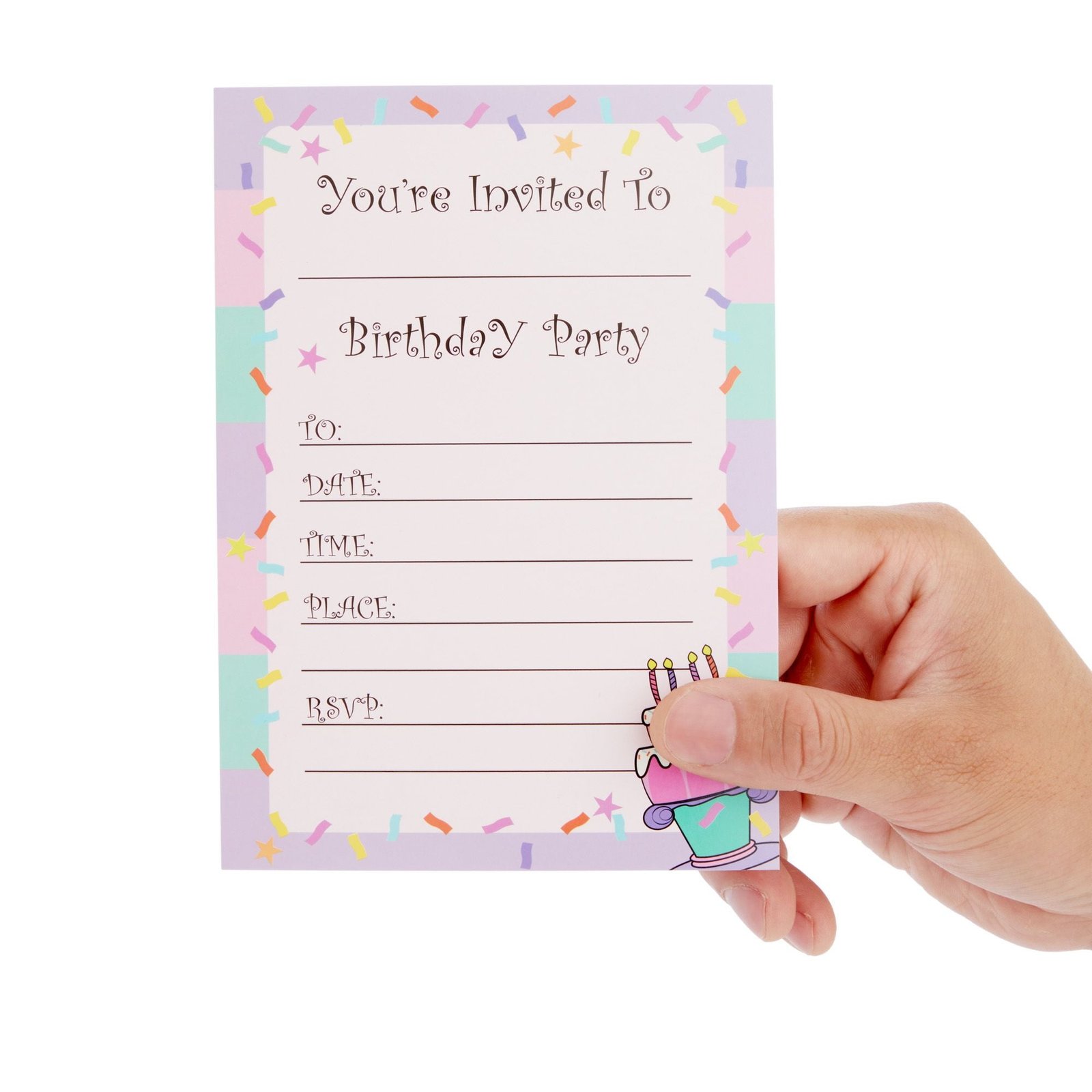 24 Pack Birthday Invitations for Girls, Fill-In Invite Cards with Envelopes, Confetti Design 5×7 in