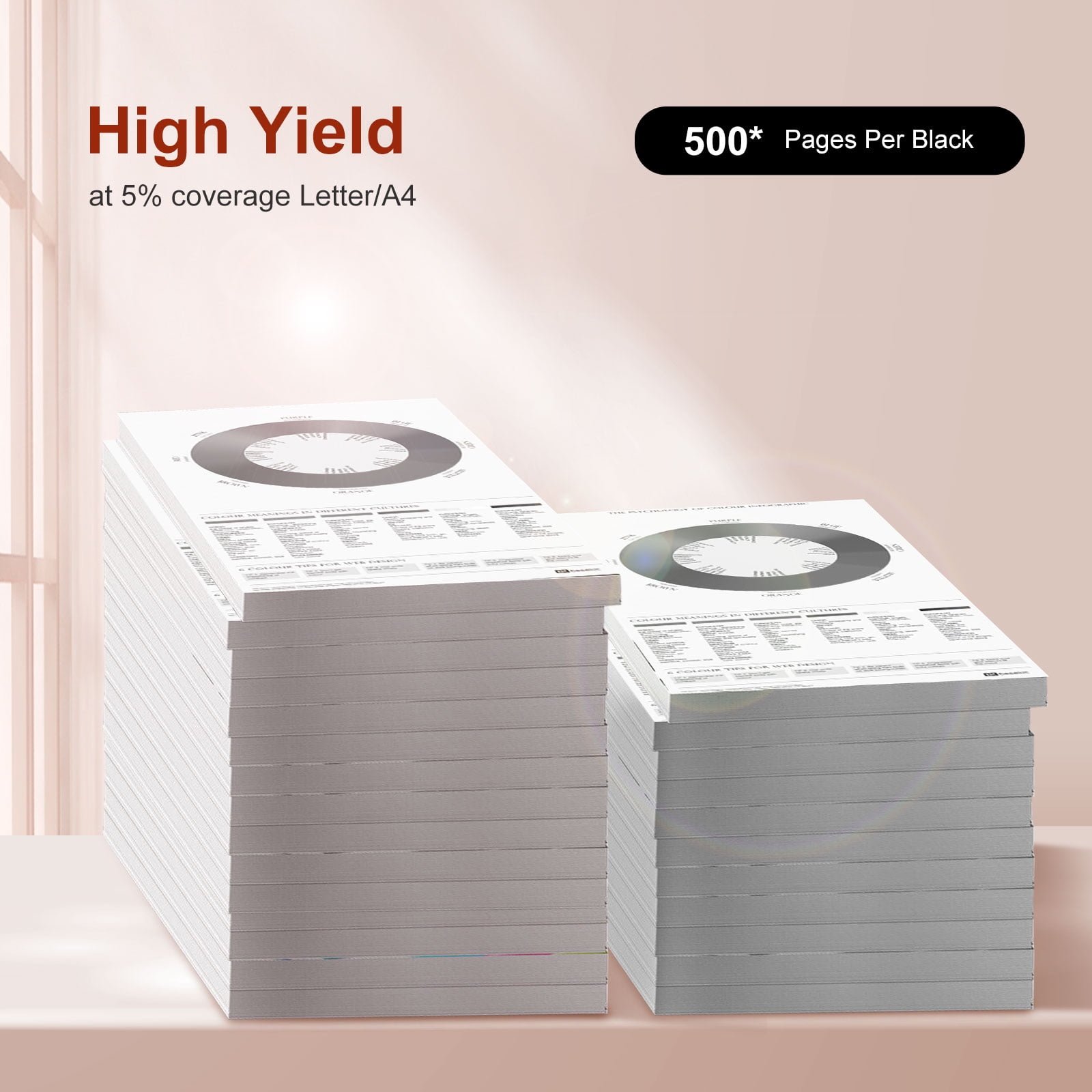 Black is 500 pages per cartridgeat 5% coverage Letter/A4