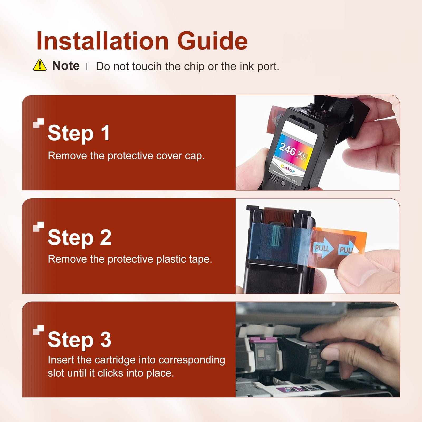 Step 3: Install the ink cartridge into the corresponding slot