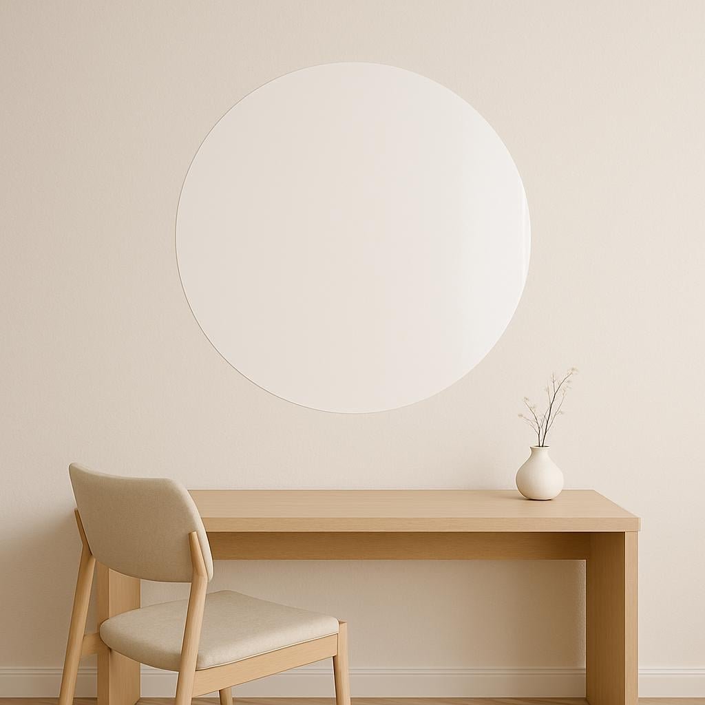 Perfect for home offices, classrooms, or creative spaces, this frameless circular design blends beautifully into minimalist or modern interiors.