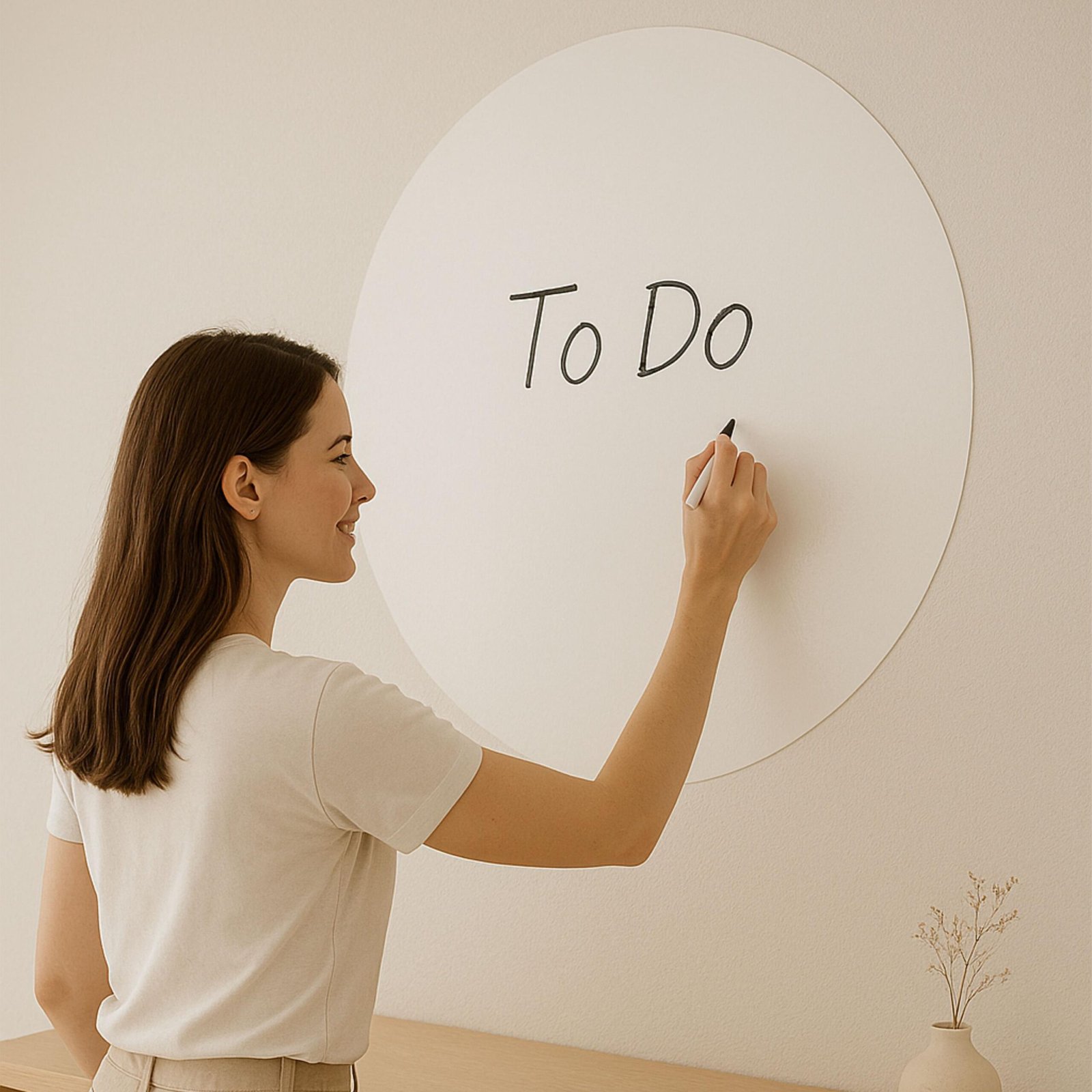 Bring function and design together with this modern round magnetic whiteboard decal, crafted from flexible self-adhesive material for effortless wall application.