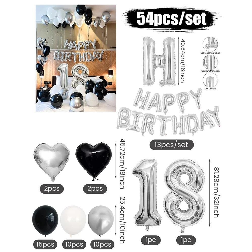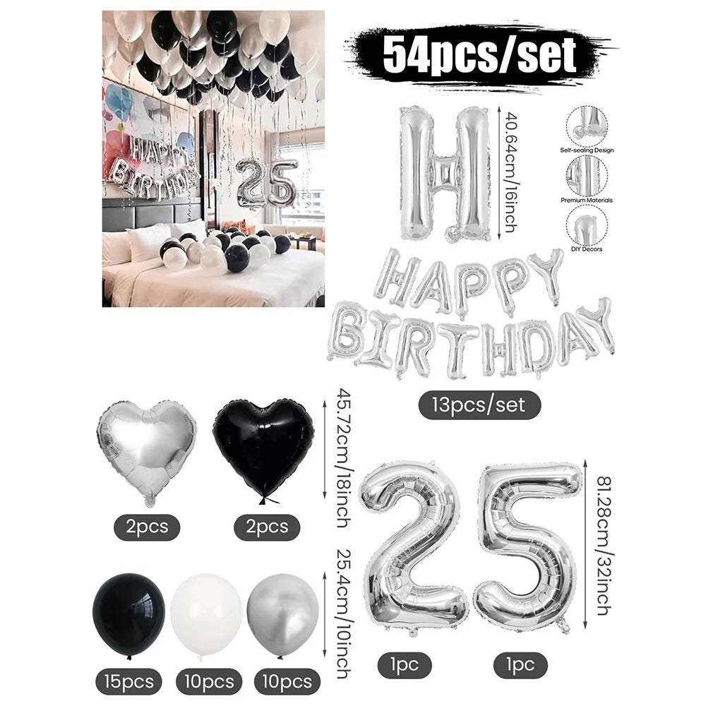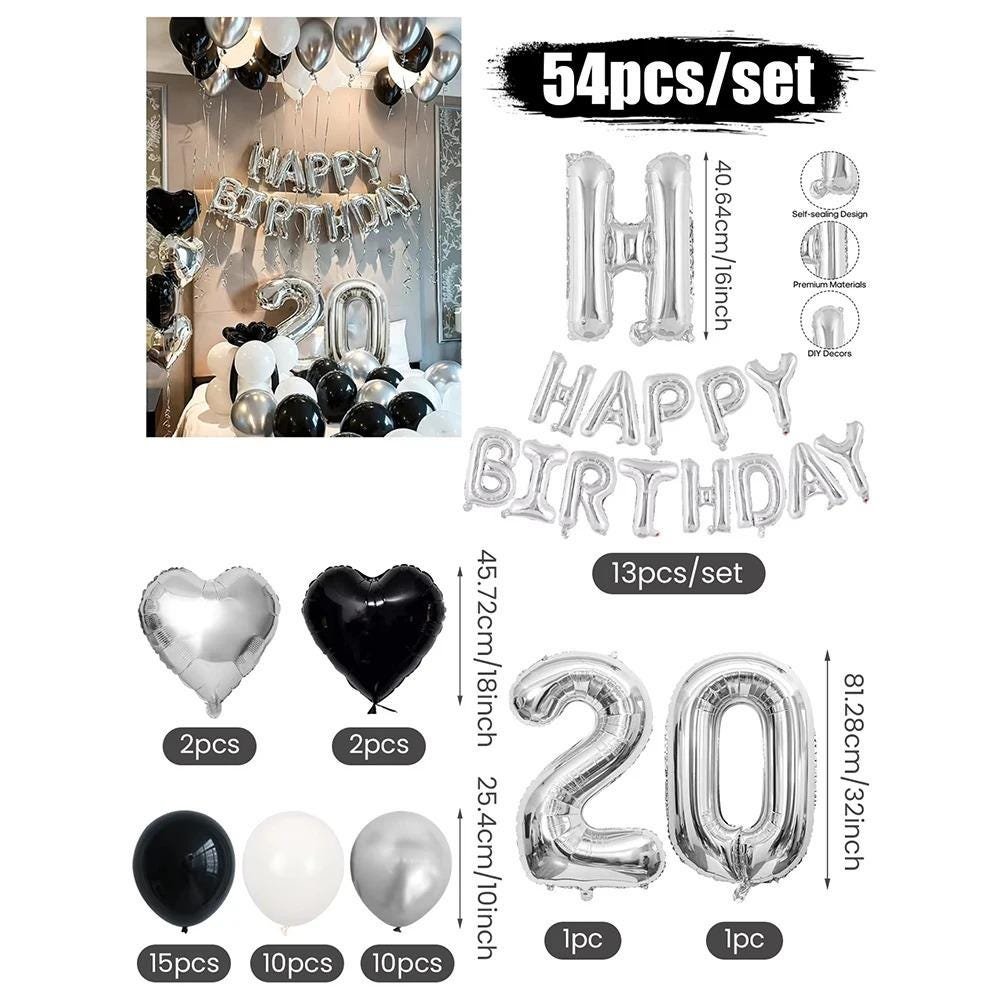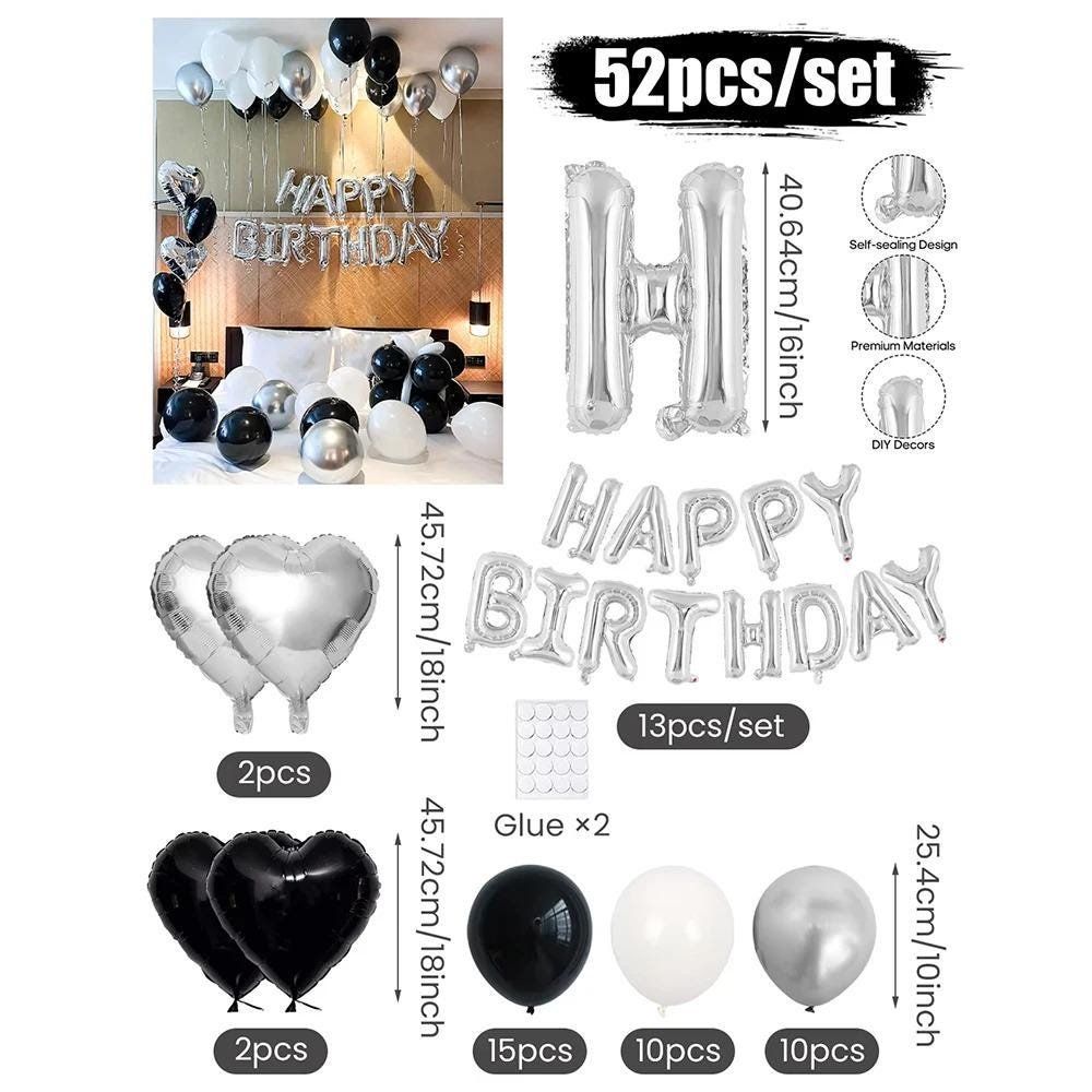 3054 Black and White Balloons, Silver Banner Balloons Suitable for Birthday Decoration, Home Decor, Party Decor, Personalized Decor