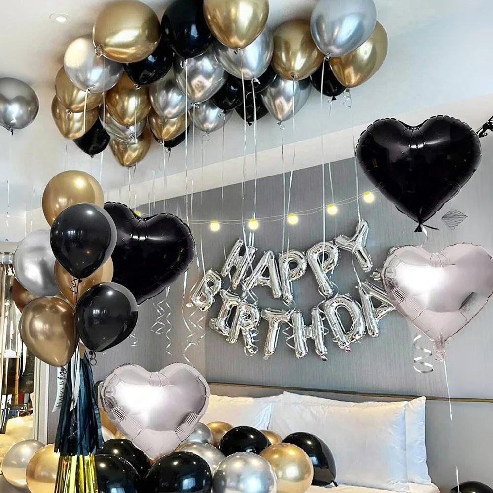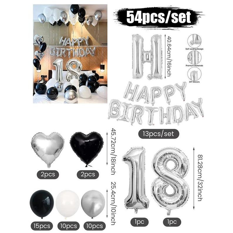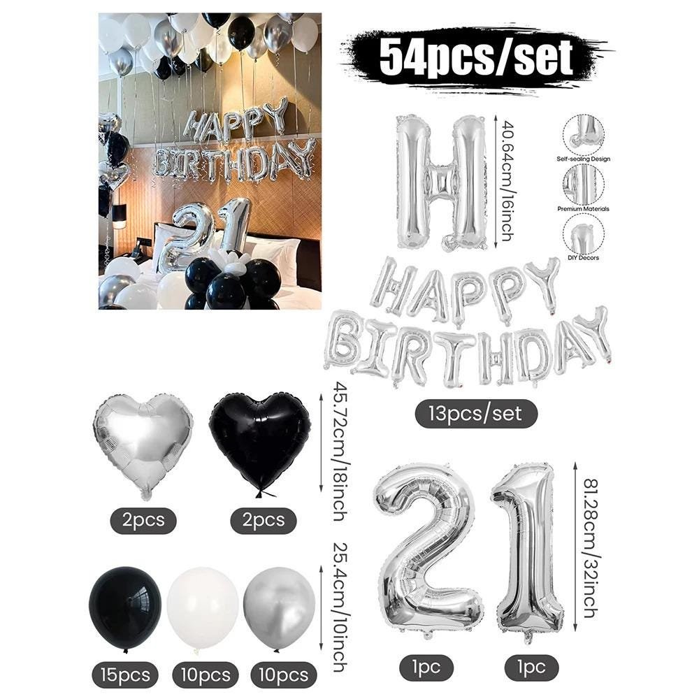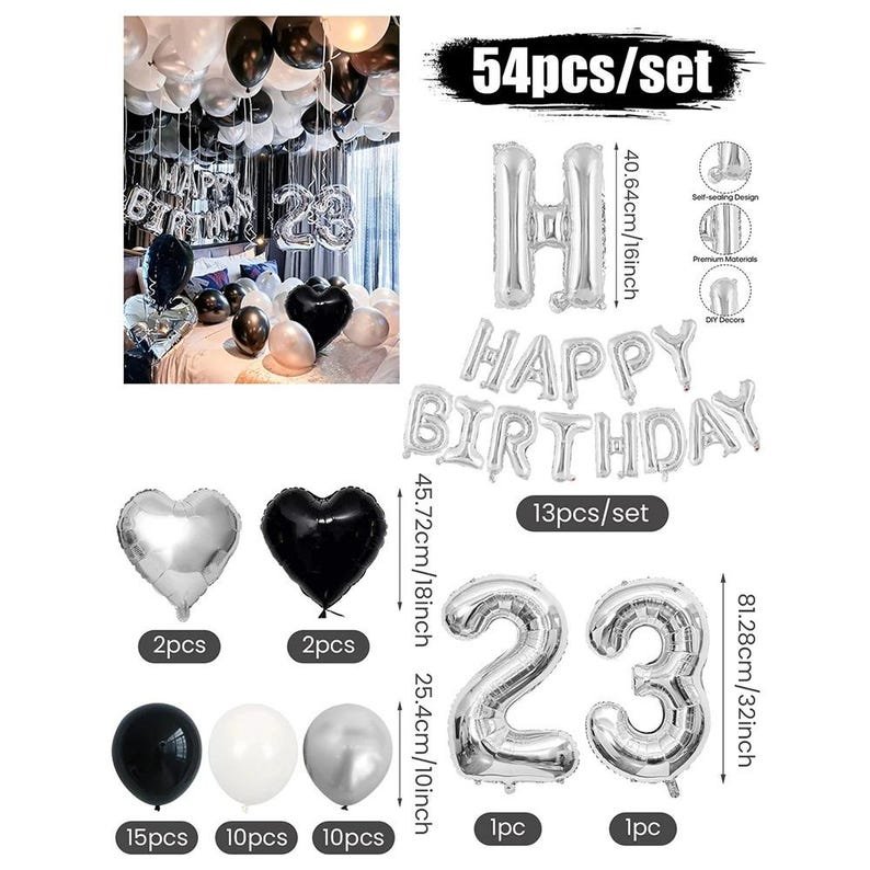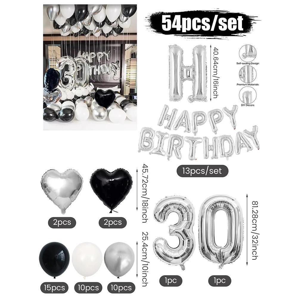 3054 Black and White Balloons, Silver Banner Balloons Suitable for Birthday Decoration, Home Decor, Party Decor, Personalized Decor