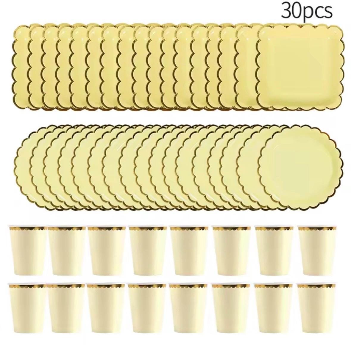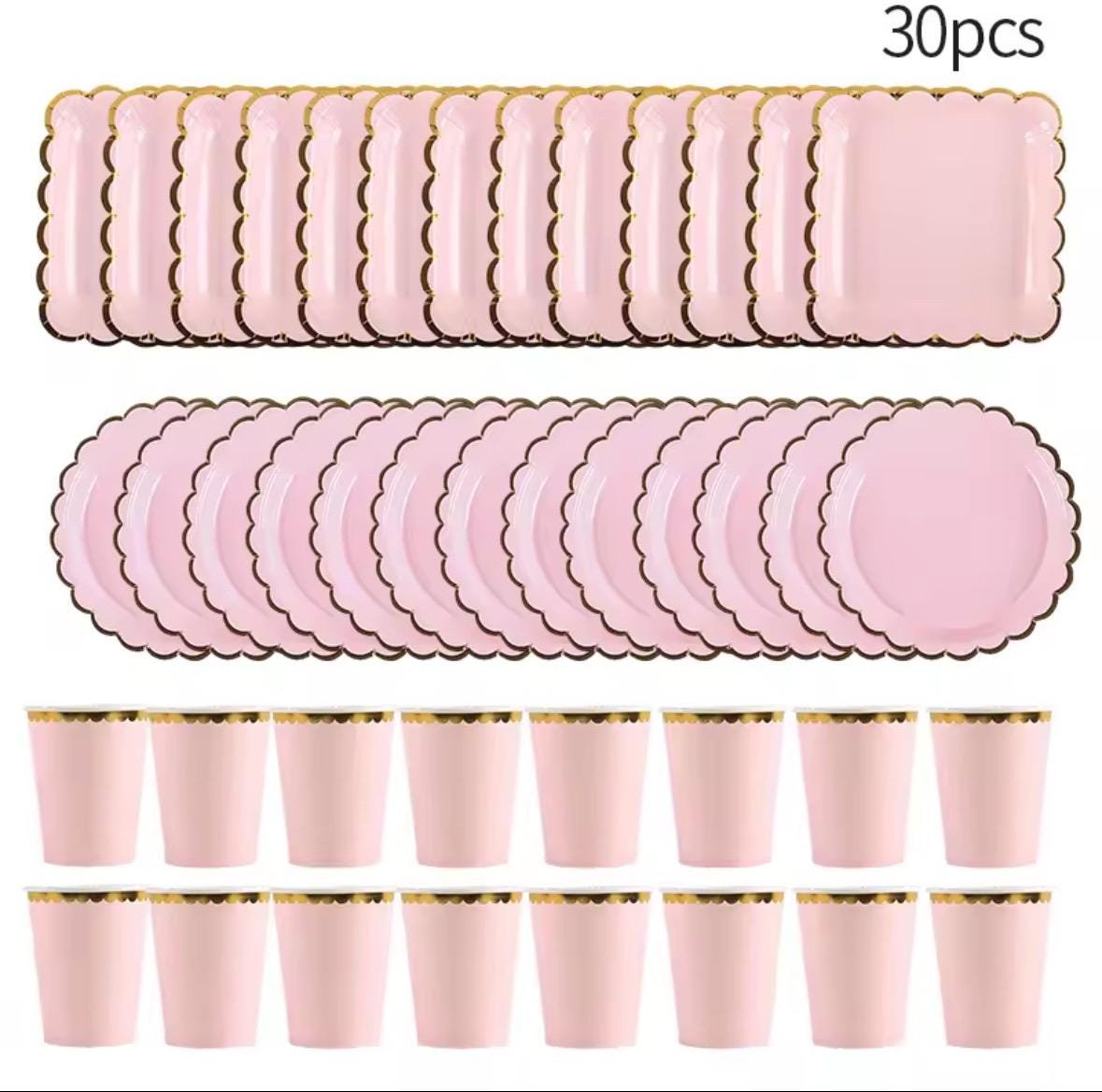 30pc Scalloped Edge Paper Party Tableware Set – Plates & Cups – Pastel Colours