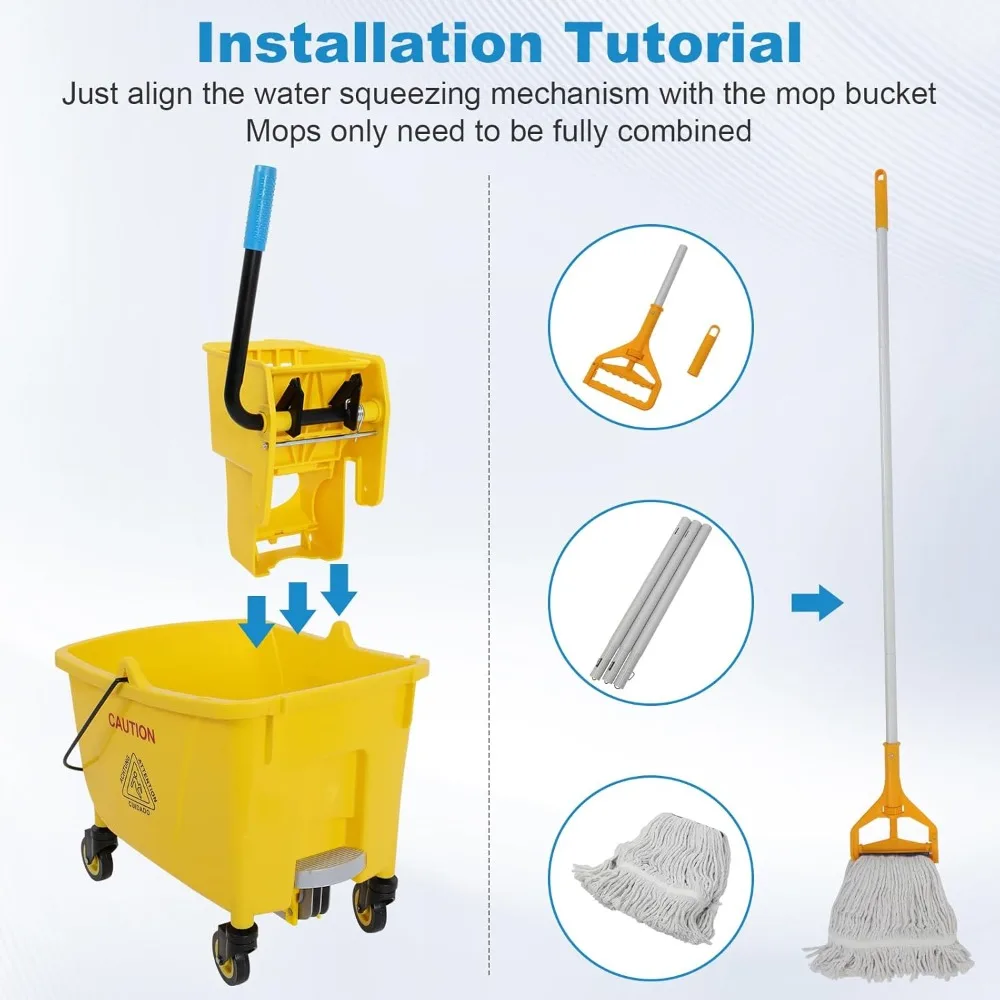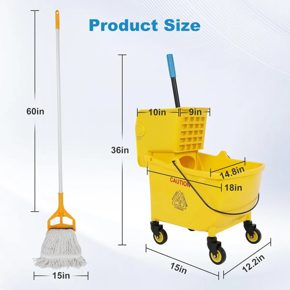 35 Qt Commercial Mop Bucket with Side Press Wringer on Wheels, All-in-One Set for Home and Industrial Use