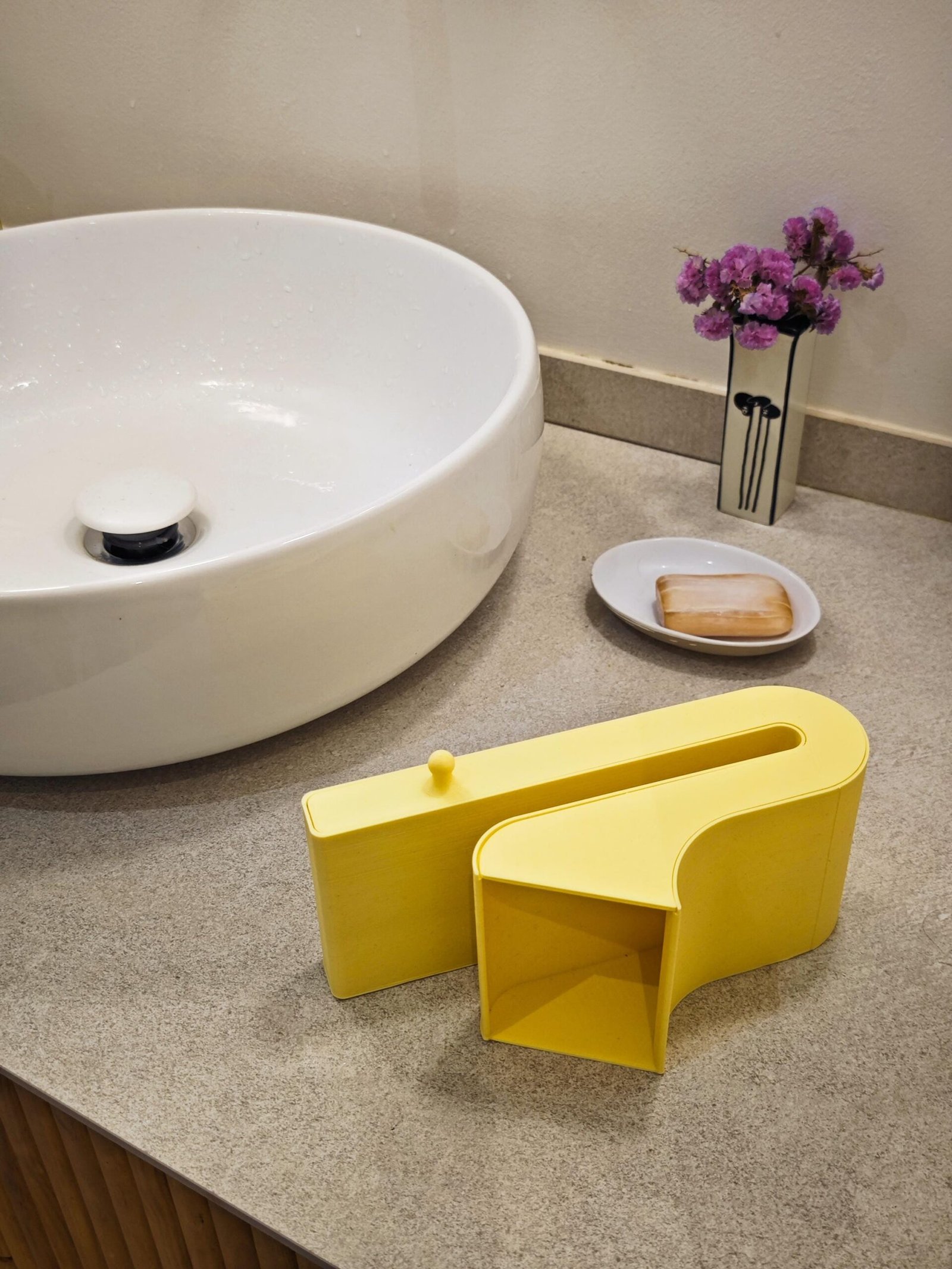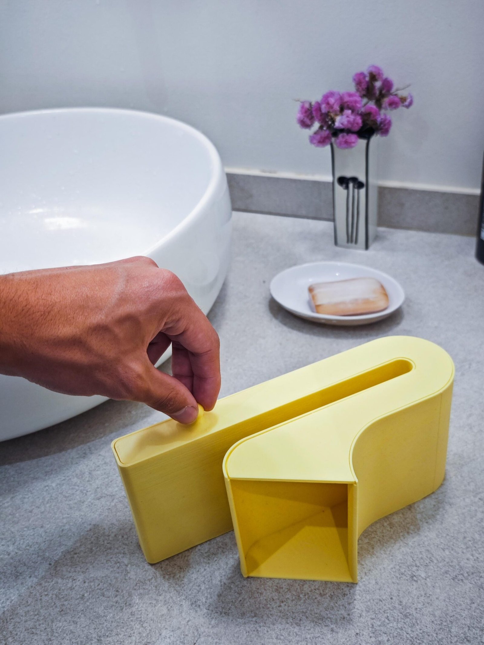 This printable passive speaker is specially designed to sit on top of a shower glass panel. The U-shaped form straddles the edge of your shower screen, positioning your phone safely on the outside, while the inner horn-shaped channel amplifies the sound inside the shower.