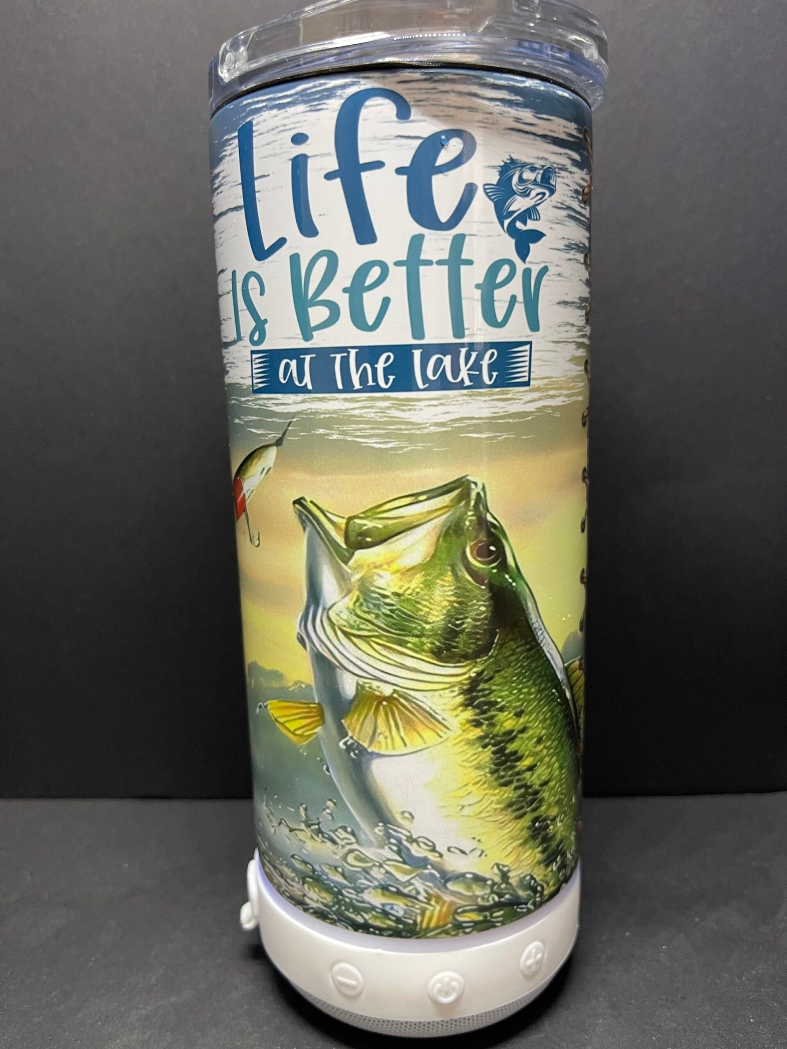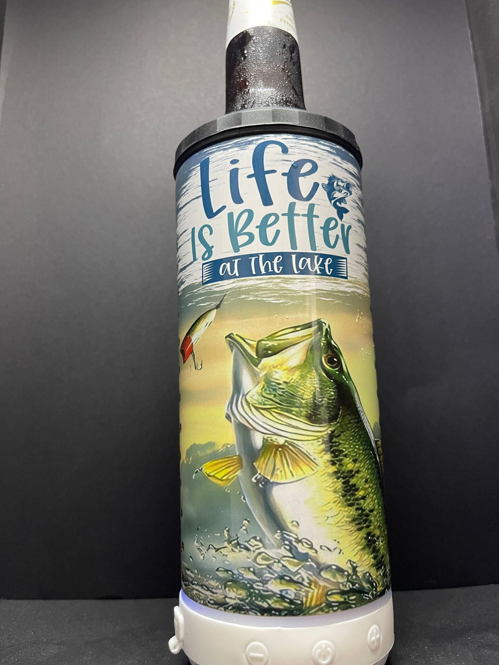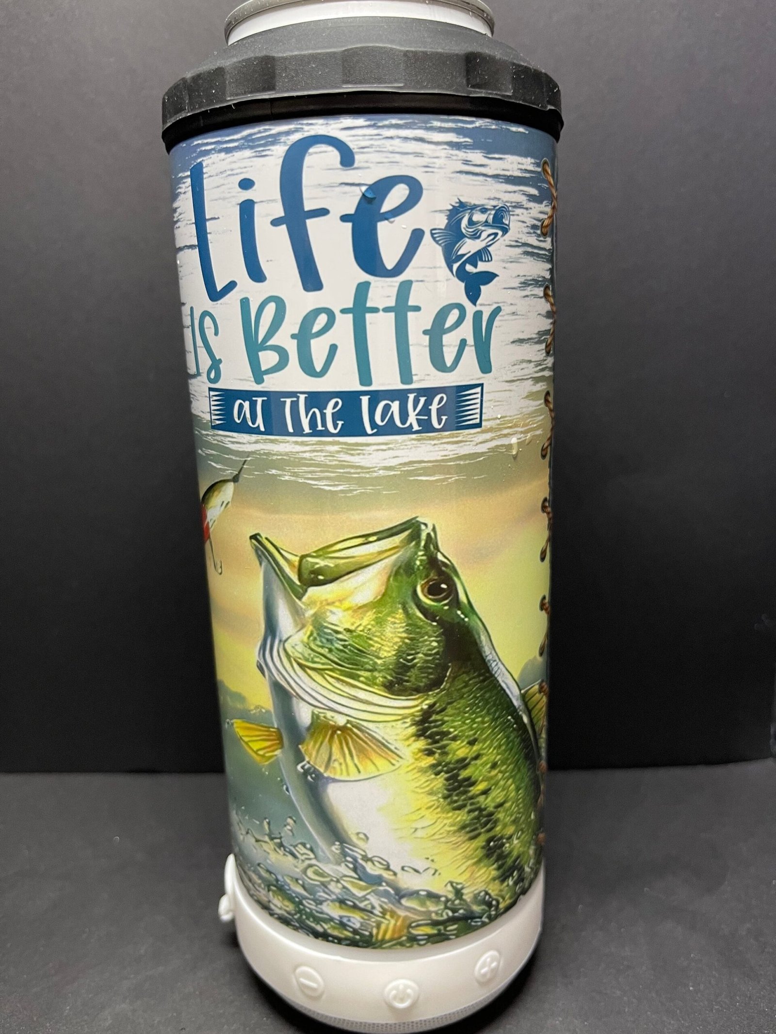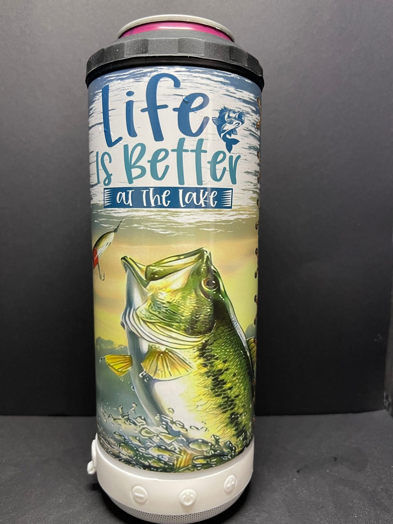 This is a great 4 in 1 can cooler with Bluetooth speaker. Tumbler can hold 16oz fluid, cans and bottles. I can also customize it to just about anything you want.