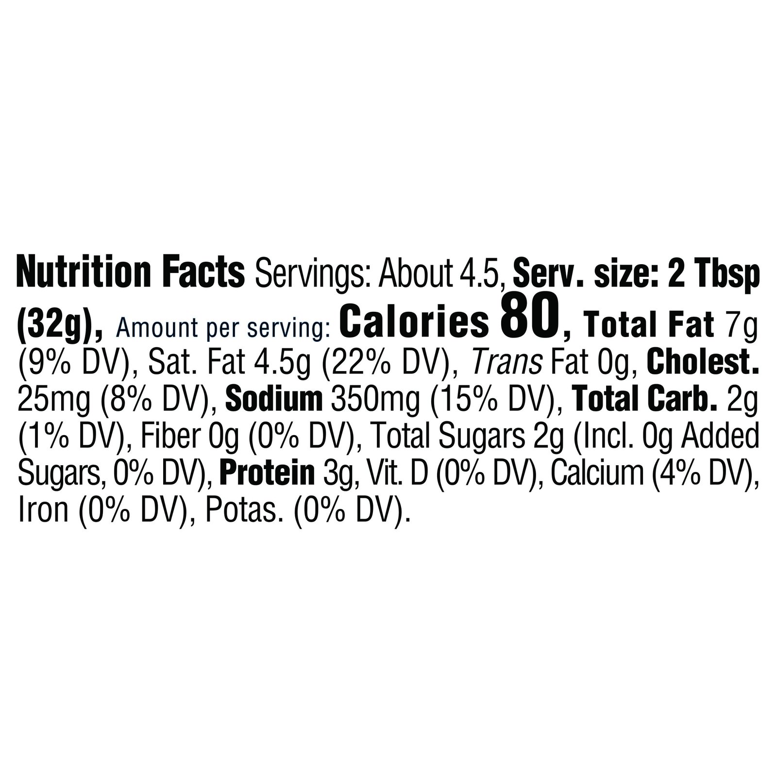 - Serving size is 2 tablespoons; each jar contains about 4.5 servings