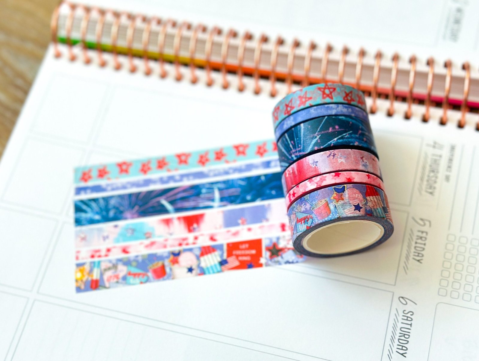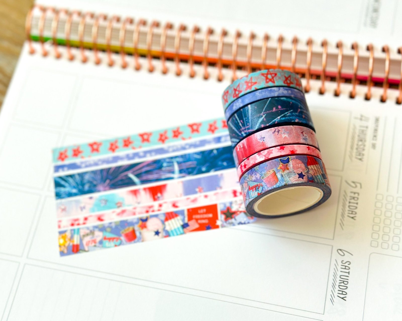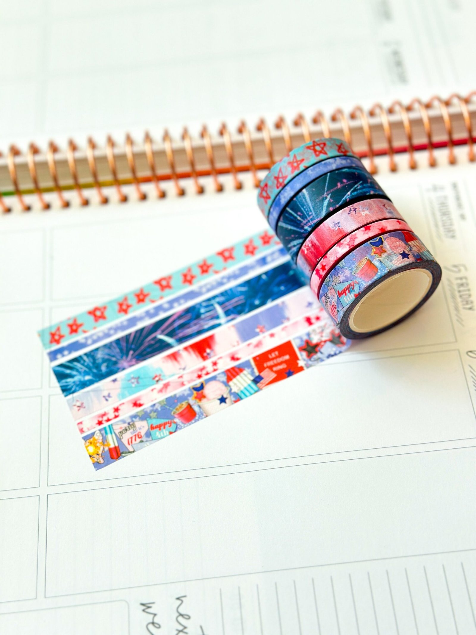 4th Of July Red White & Blue BBQ Party Stars Stripes Washi Tape Set July 2024 – W111