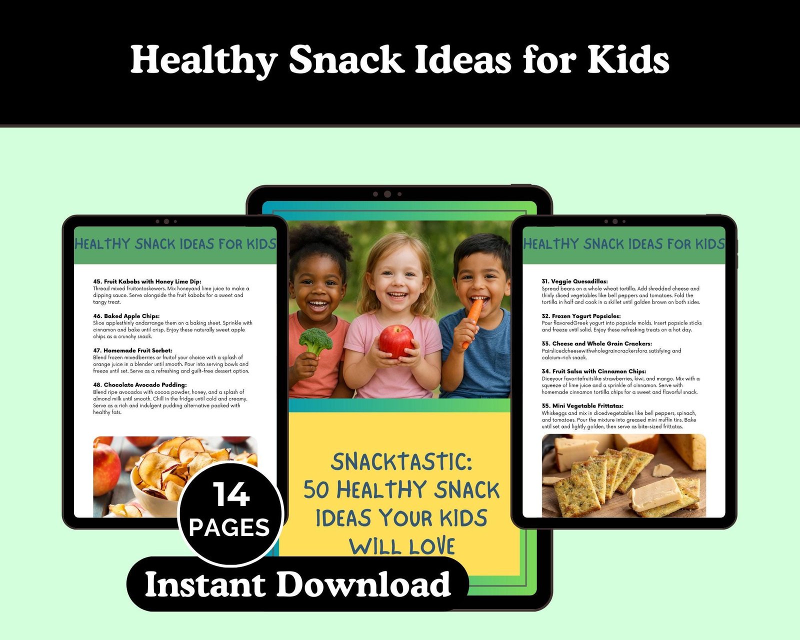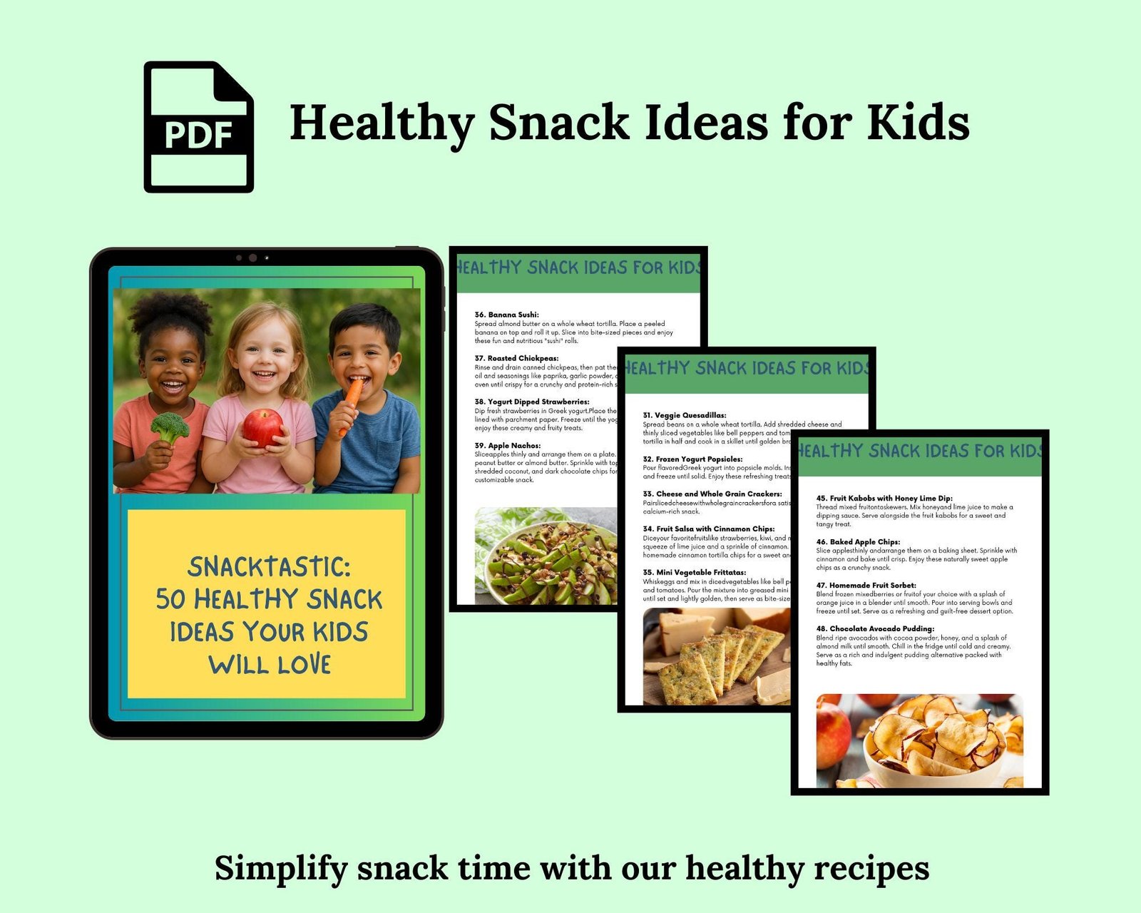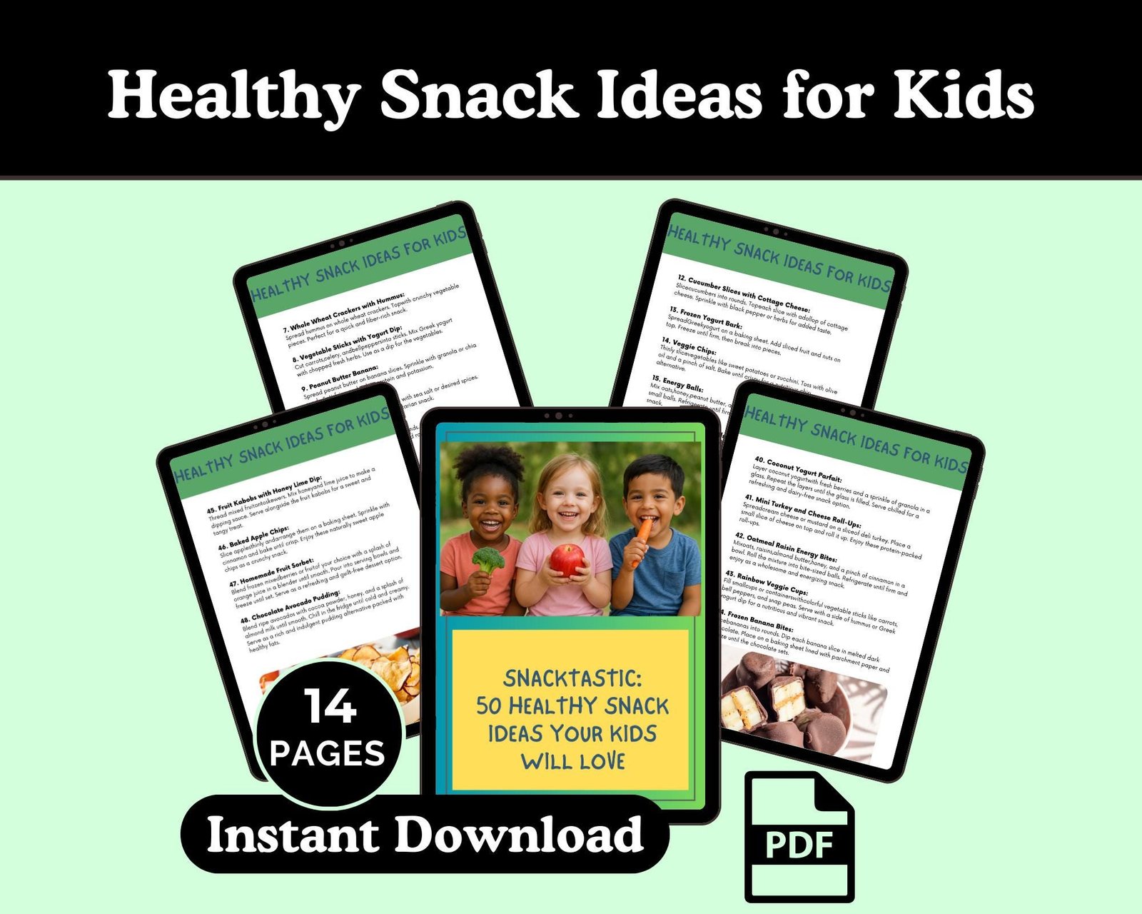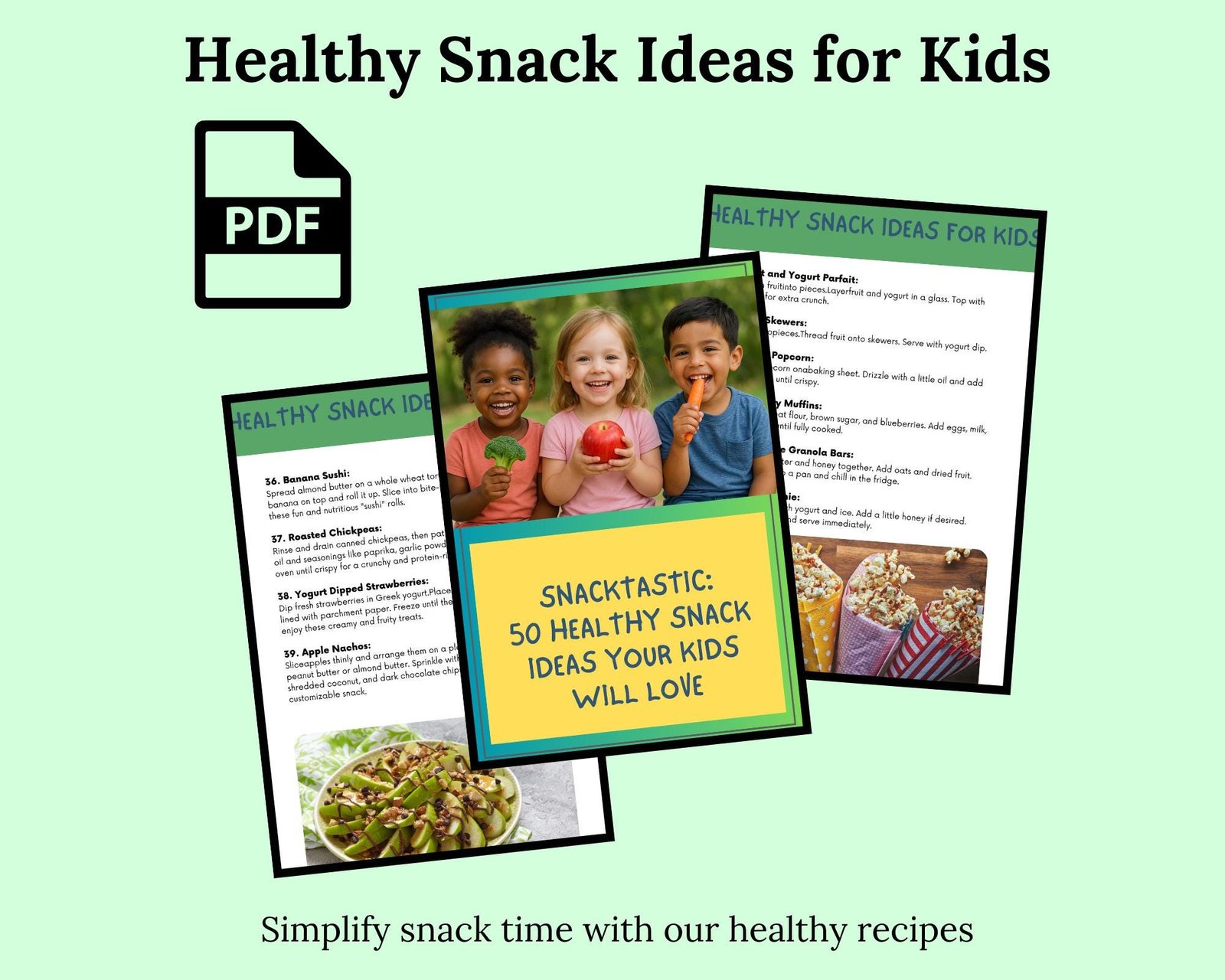 50 Healthy Snack Ideas for Kids: Printable Recipe Book Digital Download