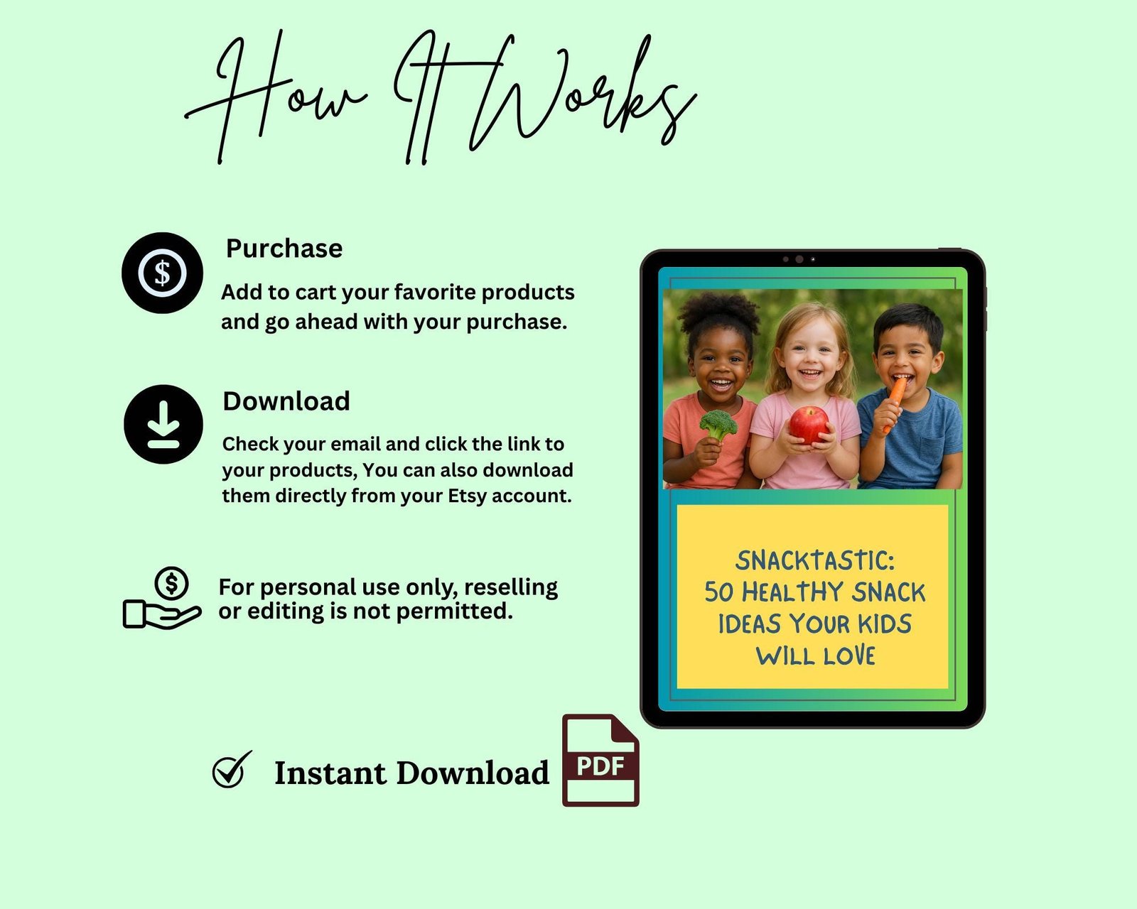Be the first to review “50 Healthy Snack Ideas for Kids: Printable Recipe Book Digital Download”