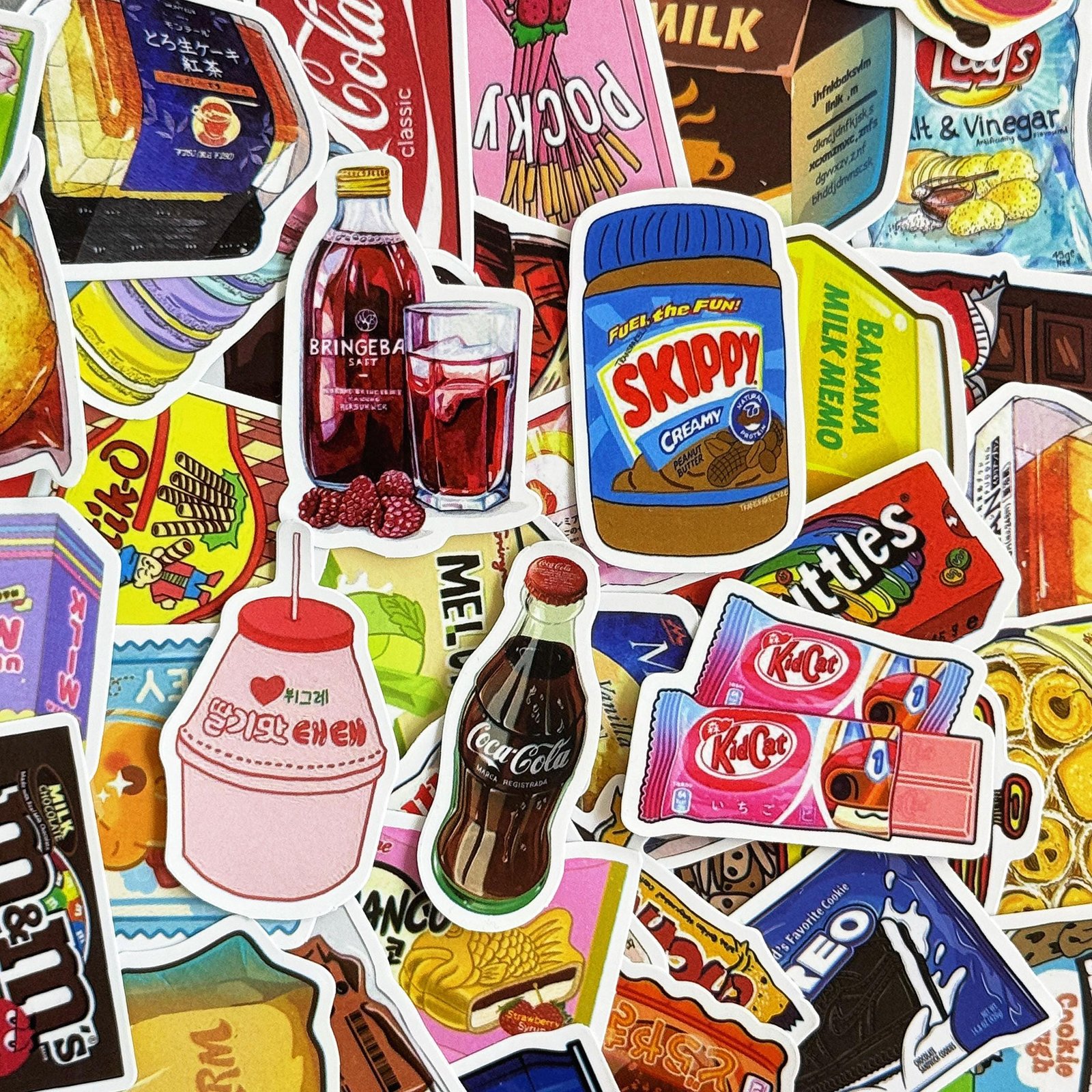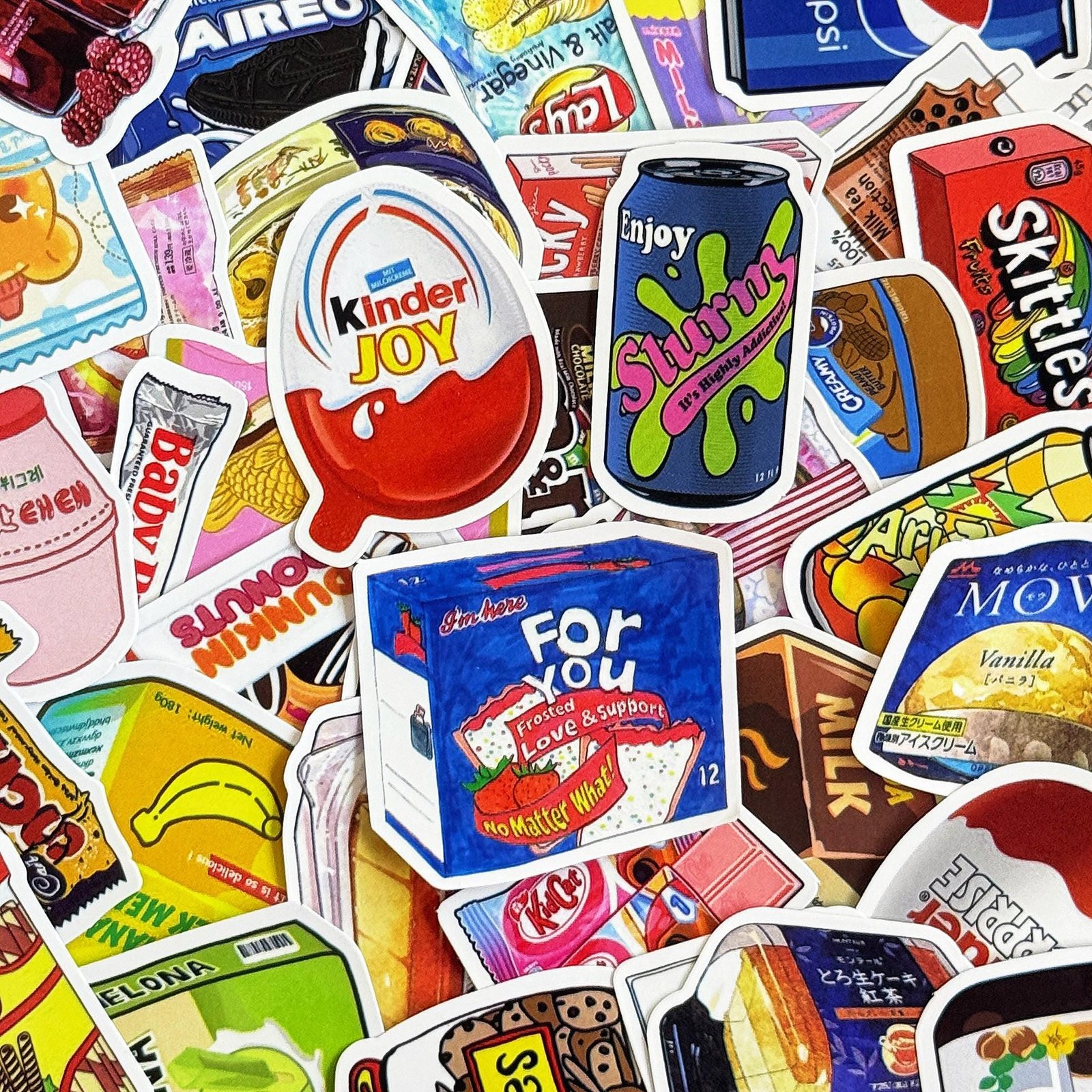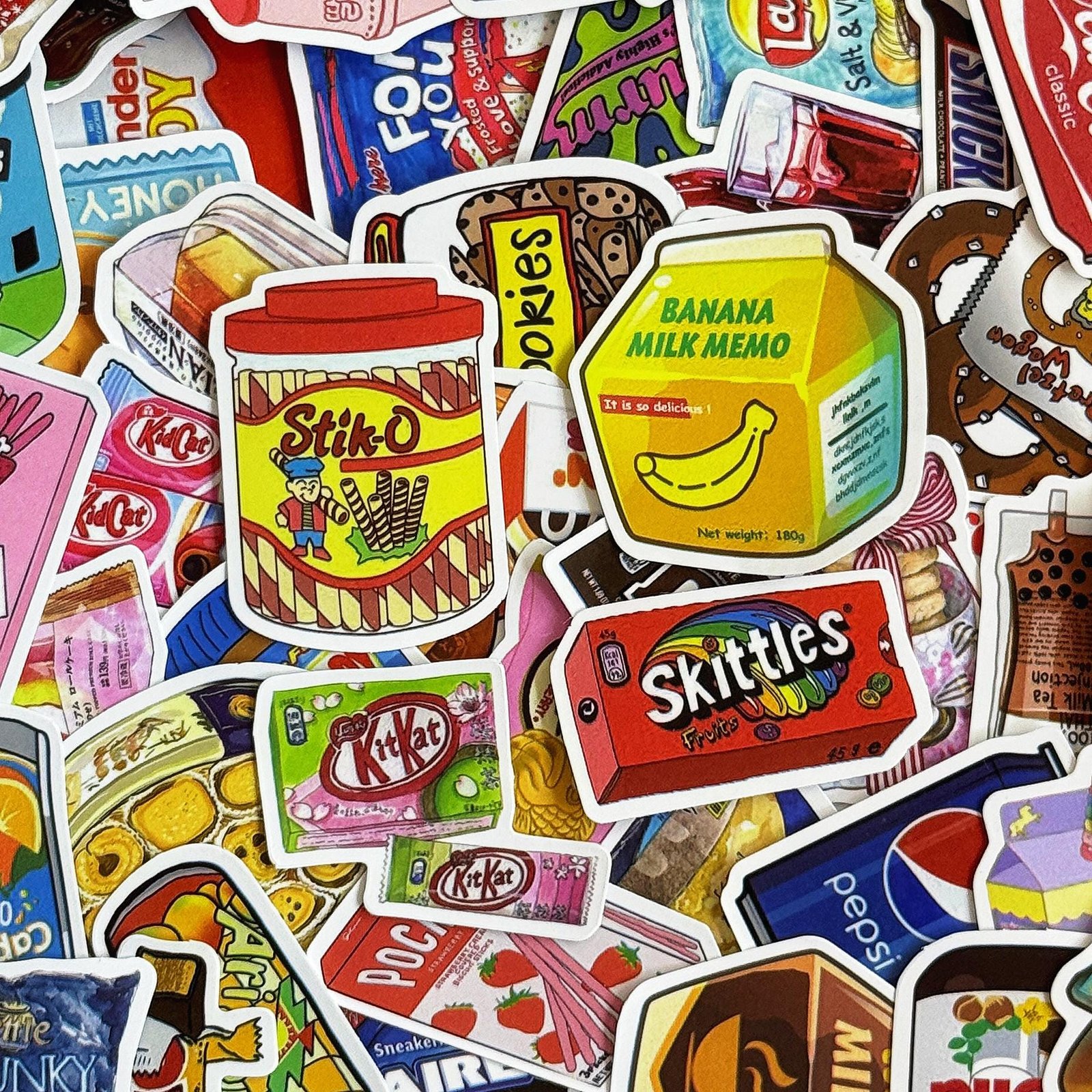 50pcs Cartoon Snack Stickers, Cute Candy Food Stickers, Drink Bottle Stickers, Waterproof Gift Stickers for Snack Lovers, Kids, Collectors
