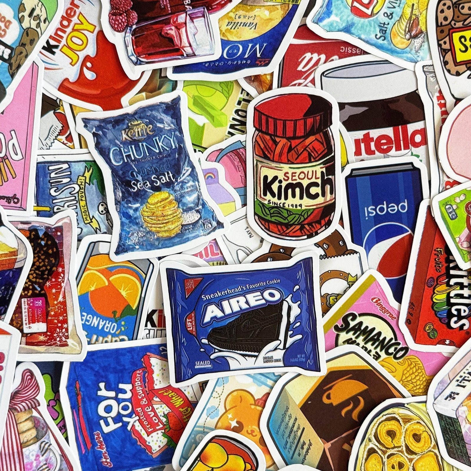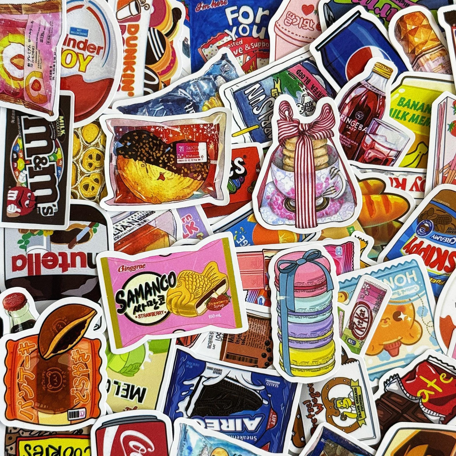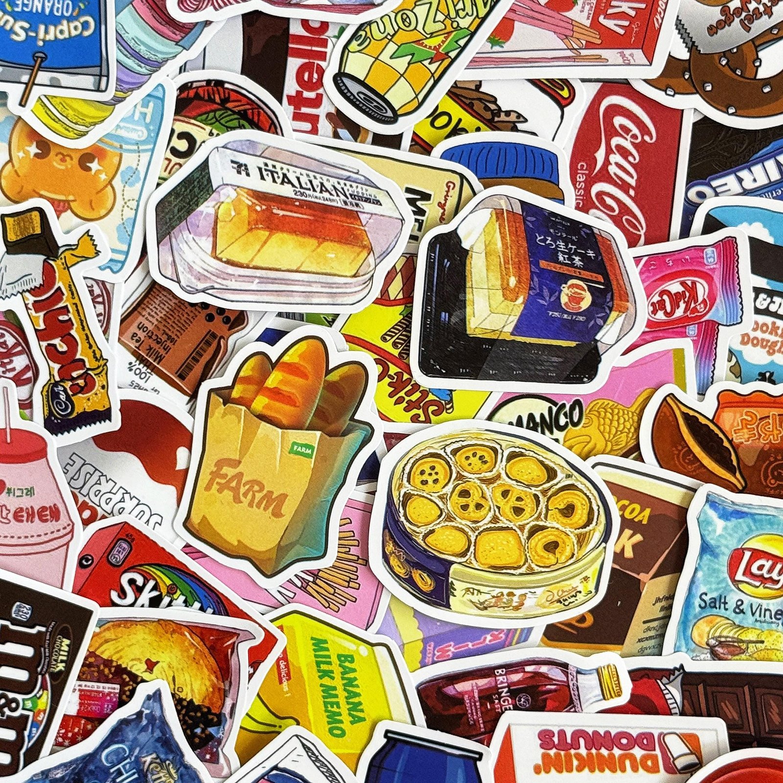 50pcs Cartoon Snack Stickers, Cute Candy Food Stickers, Drink Bottle Stickers, Waterproof Gift Stickers for Snack Lovers, Kids, Collectors