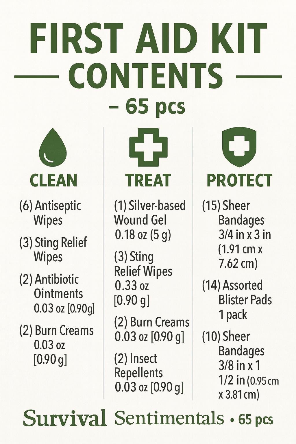 65 – Piece First Aid Kit — Compact Outdoor Fishing Hiking Medical Pouch
