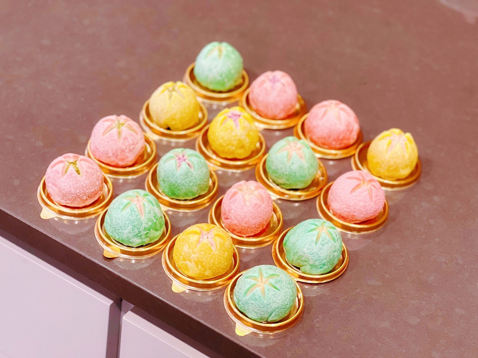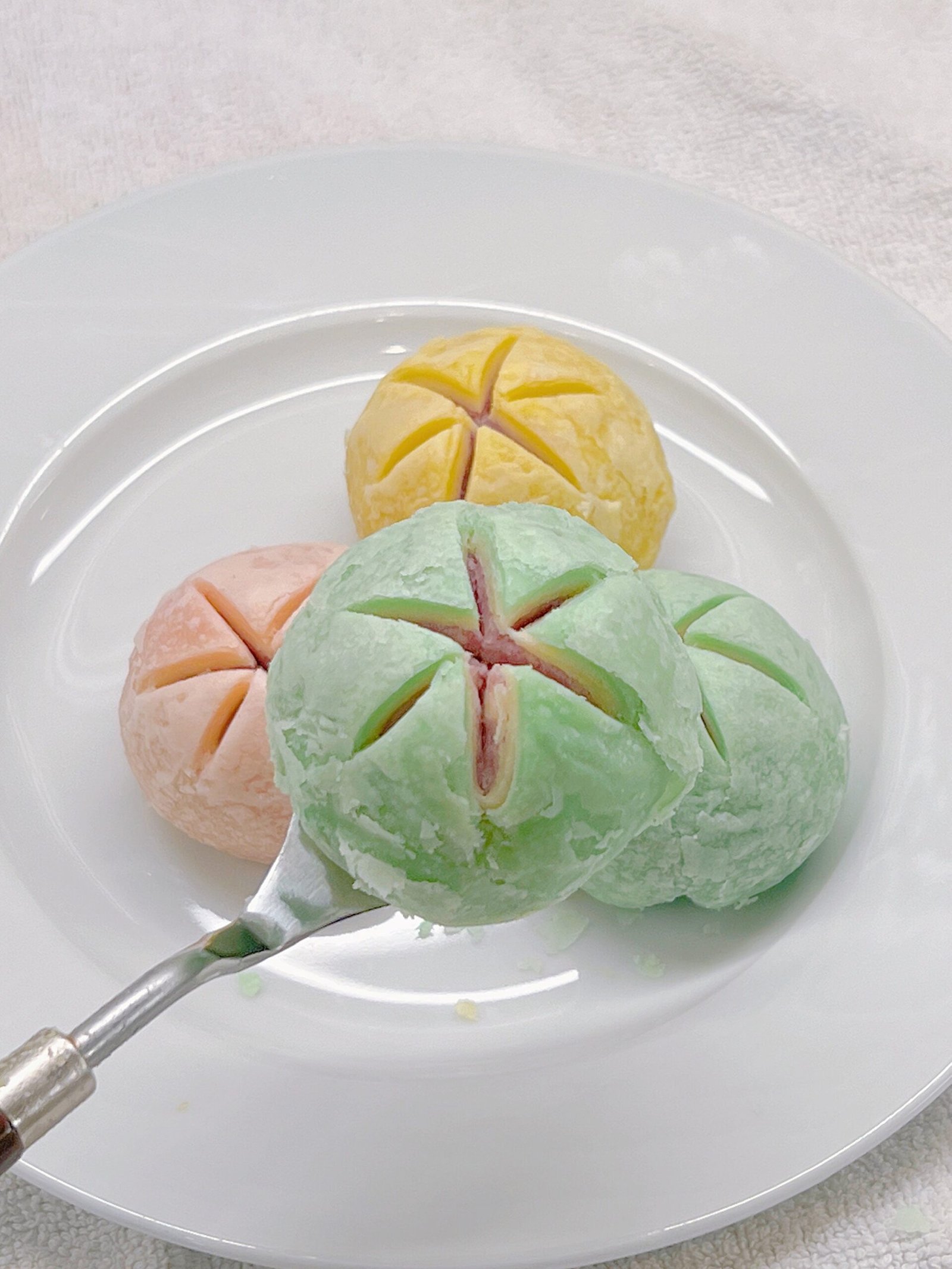 This charming and colorful lotus pastry comes in four delightful flavors: matcha, strawberry, purple sweet potato, and red dates. Each set includes all four flavors, and while the colors may vary, I always create unique combinations to enhance their beauty.