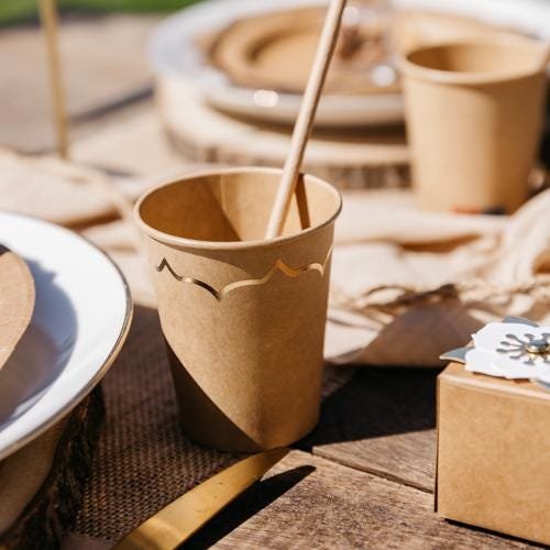 These stunning cups are made of Kraft paper with a luxurious gold rim.