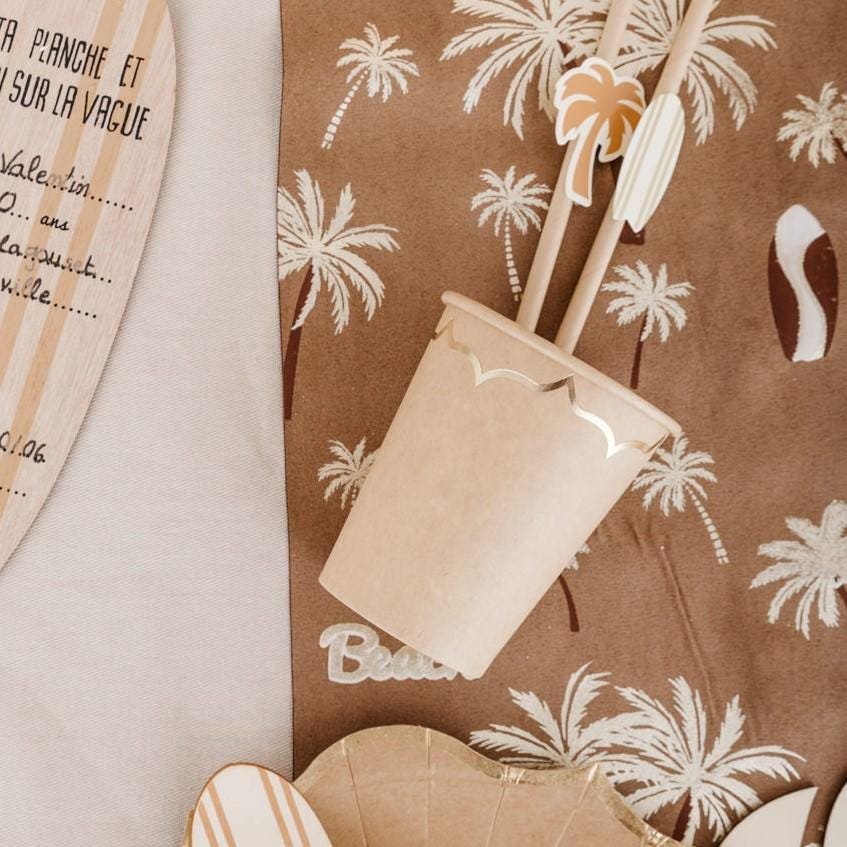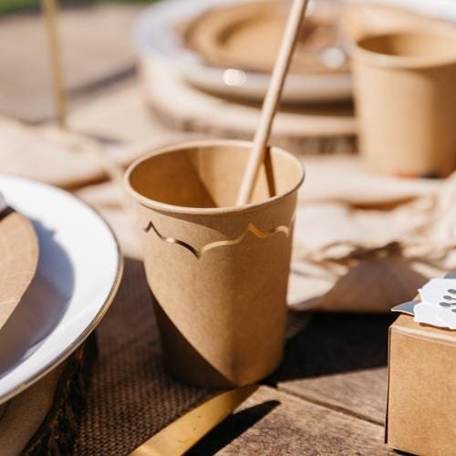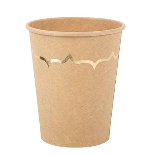 8 Kraft Paper Cups with Gold Rim, 255ml, Gold Rim Cups, Paper Cups, Kraft Paper Cups, Kraft Tableware, Birthday Party Decorations
