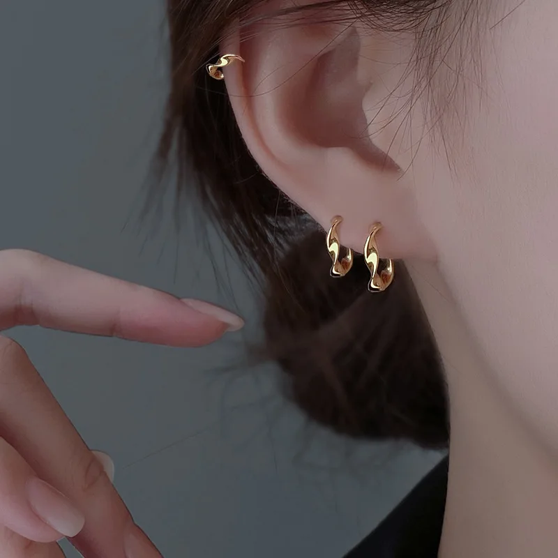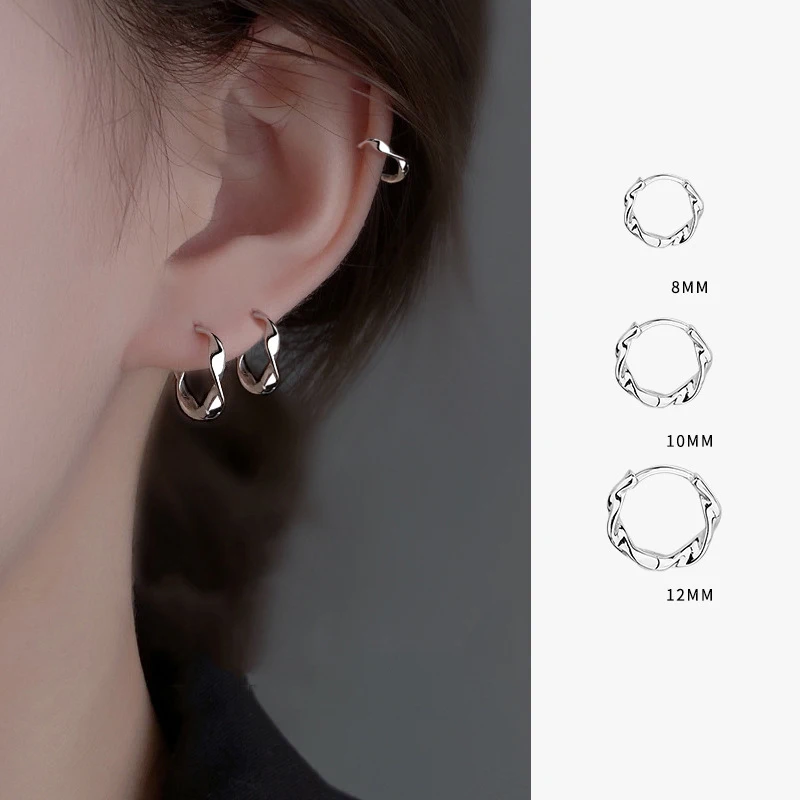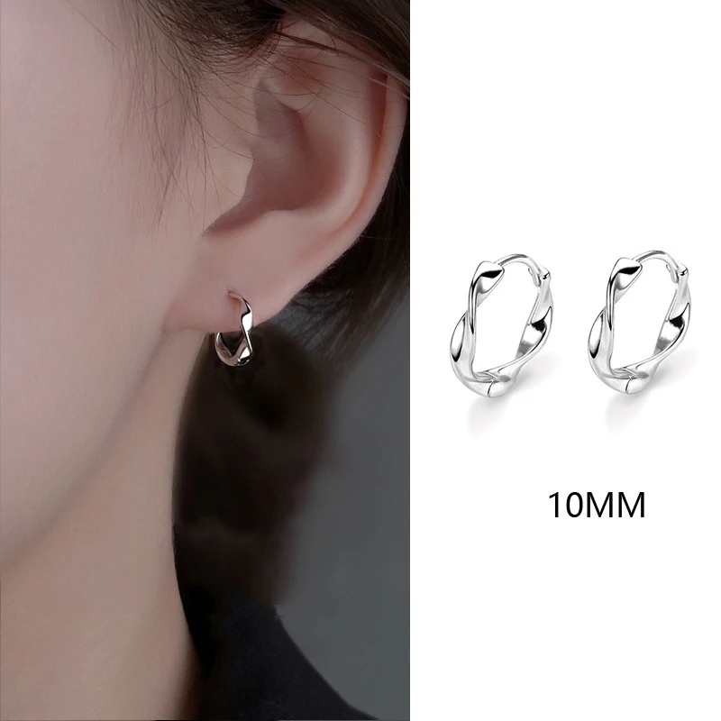925 Sterling Silver Geometric Mobius Waves Hoop Earrings for Women Fine Jewelry Allergy Minimalist Accessories