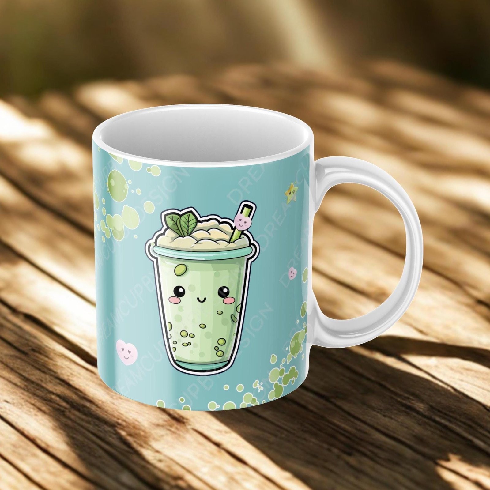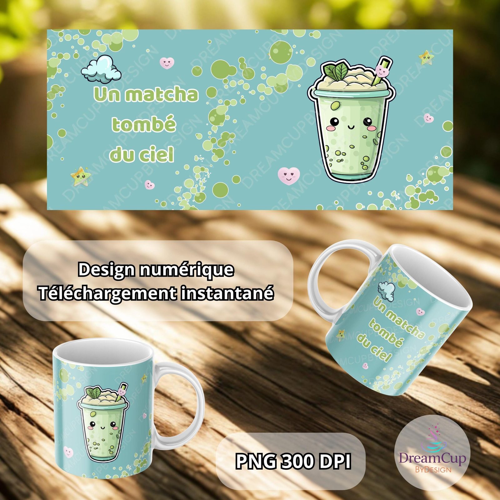 A Matcha Fallen from the Sky PNG – Kawaii Matcha Mug Wrap 300 DPI – Green Drink Sublimation Design – Cute Matcha Lover Digital Download