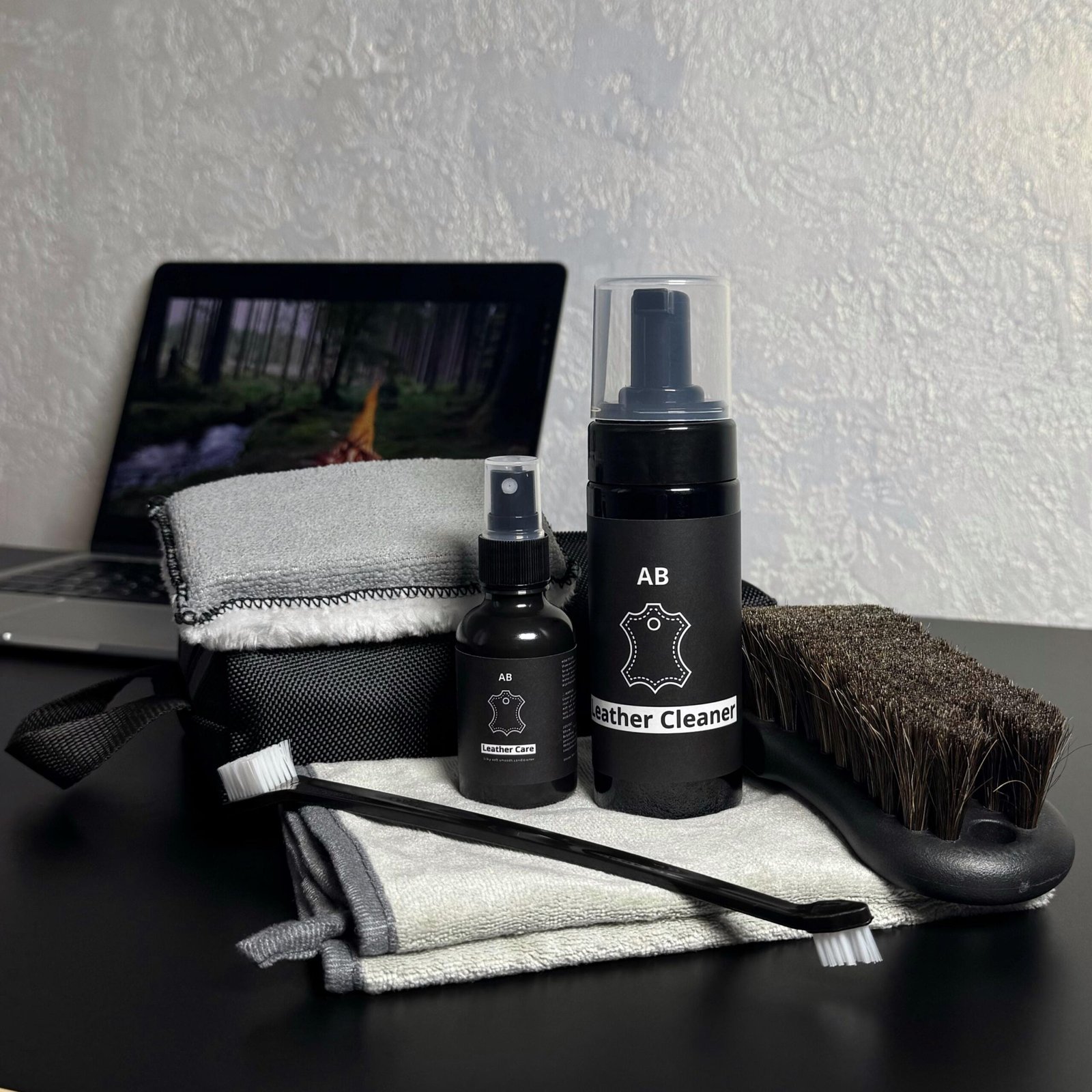 AB Leather Care Kit Complete 8-in-1 – Professional Car Interior Leather Cleaner & Conditioner Set with Brush, ClothStorage Bag