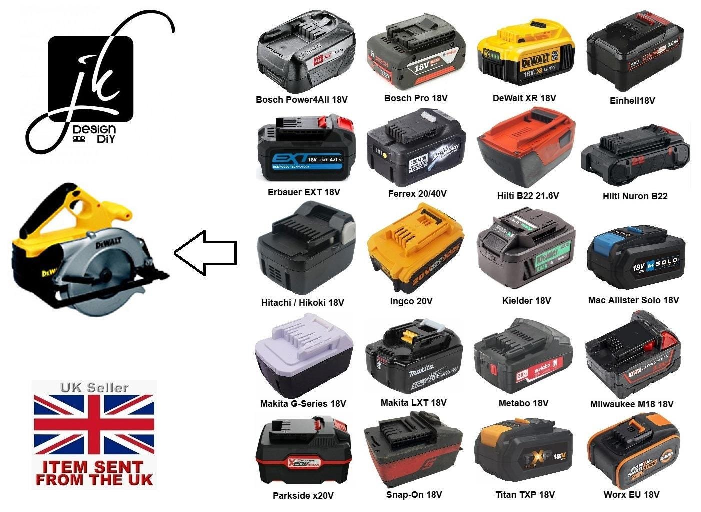 Bosch Power4All ,Bosch Pro 18V ,DeWalt XR 18 ,Einhell 18V ,Erbauer EXT 18V ,Ferrex 20V ,Hilti B22 21.6V ,Hilti Nuron B22 ,Hitachi/Hikki 18V ,Ingco 20V ,Kielder 18V ,MacAllister Solo 18V ,Makita G-Series ,Makita LXT 18V ,Metabo 18V ,Milwaukee M18 18V ,Parkside x20V ,Snap-On 18V ,Titan TXP 18V ,Worx EU 18V |
