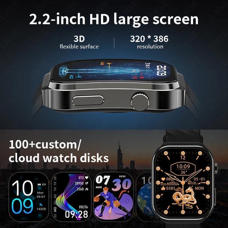 AI Health Smartwatch for Men Women with Blood Pressure Uric Acid Blood Lipid Monitoring