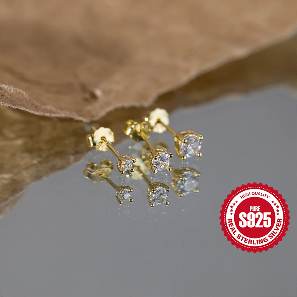Aide 925 Sterling Silver 3pcs Set 2/3/4mm Mini Round Zircon Bar Piercing Stub Earring For Women Minimalist Jewelry Party Gift