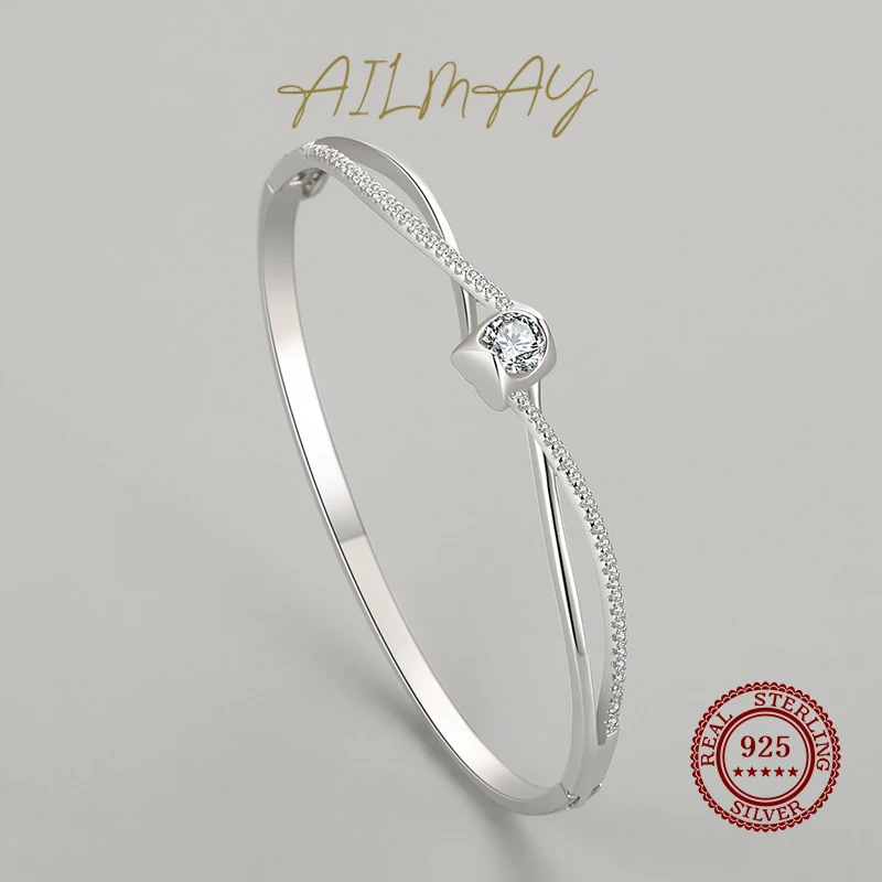 Ailmay Sparkle Interwoven Bracelets Fashion 925 Sterling Silver CZ Zircon Bracelets For Women Classic Wedding Statement Jewelry
