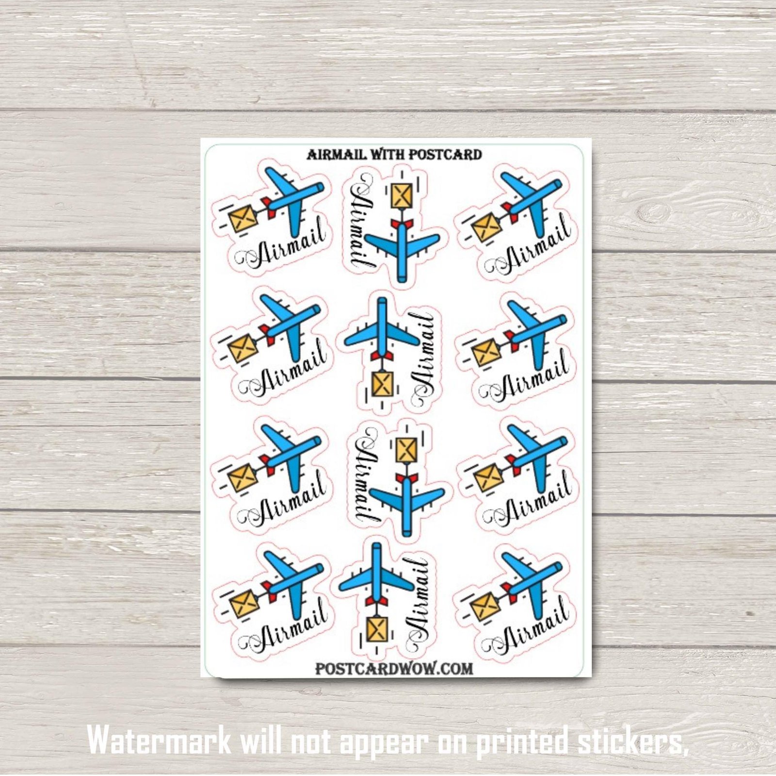 Air Mail Stickers: Airplane & Postcard Design