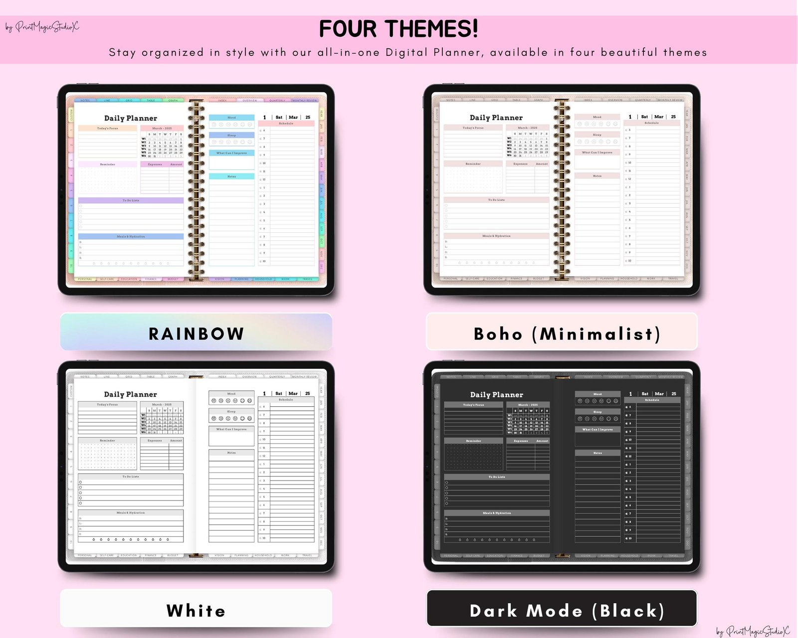 Available Themes: Rainbow, Dark Mode Black, White, Boho Minimalist