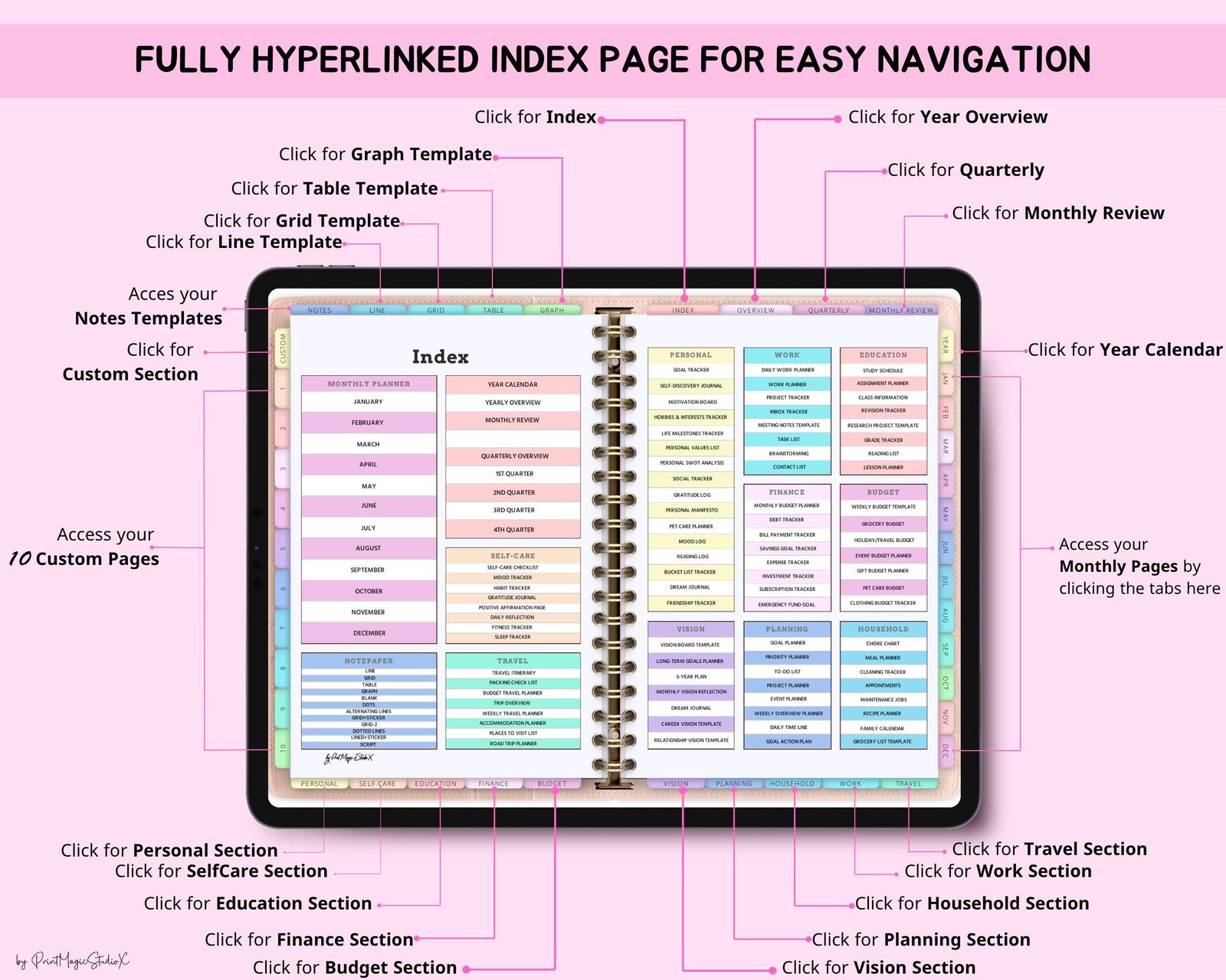 This digital planner is fully customizable and packed with 86 versatile templates designed to organize every part of your life. From personal growth and education to finance and travel, this planner adapts to your style and needs while syncing smoothly across Apple and Google devices. Plus, enjoy free yearly updates to keep your planning fresh and functional.
