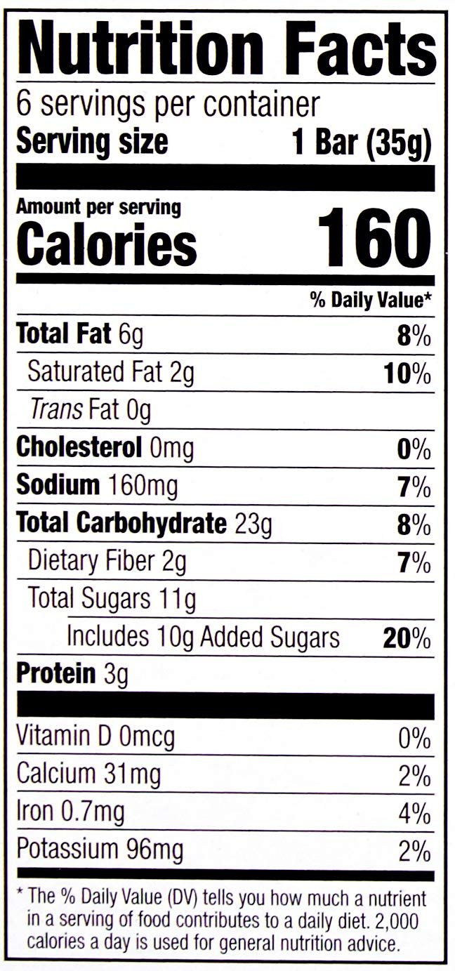 - One 7.4 ounce box containing 6, 1.2 ounce granola bars; individually wrapped for convenience and freshness