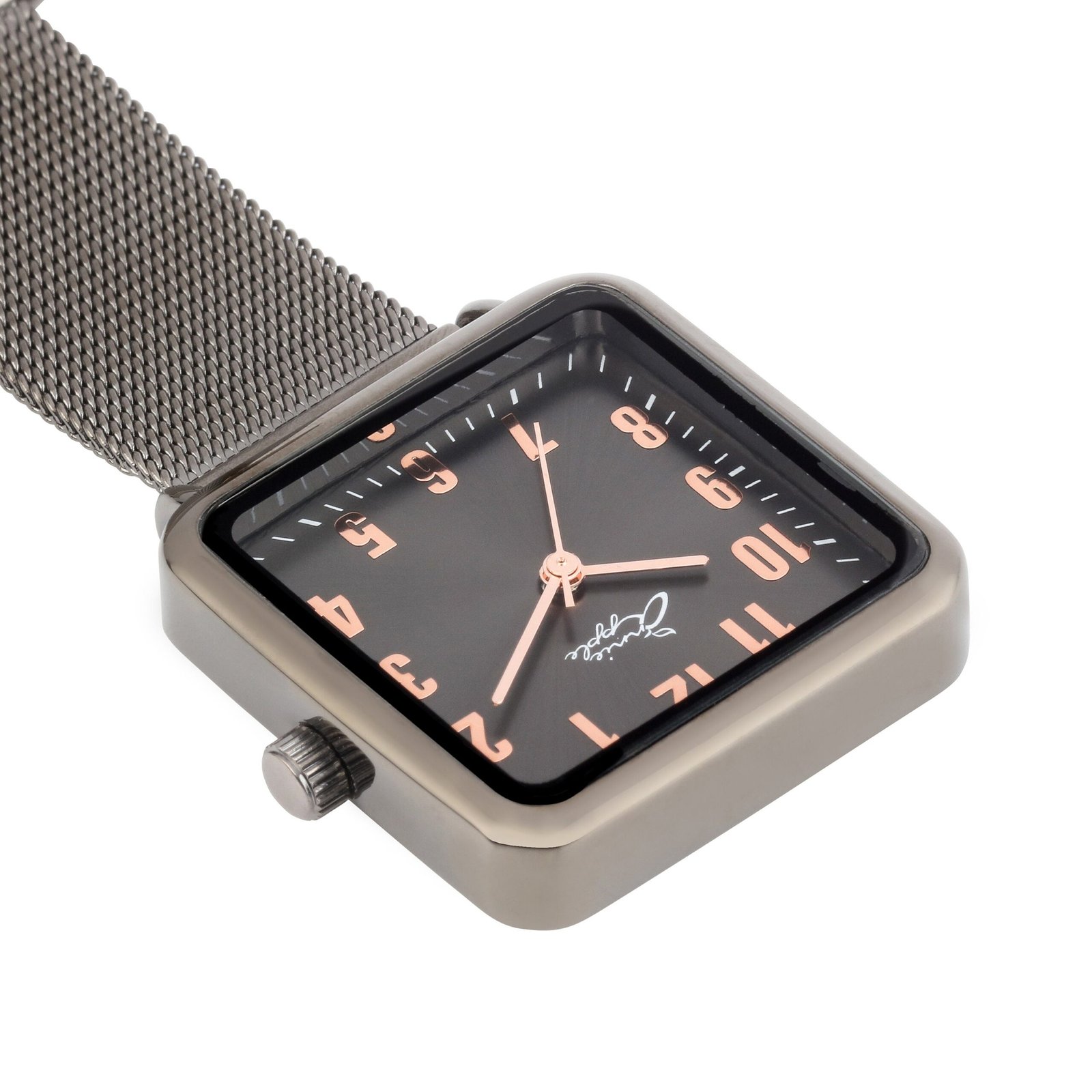 Annie Apple Rose GoldGunmetal Mesh Square Nurse fob Watch