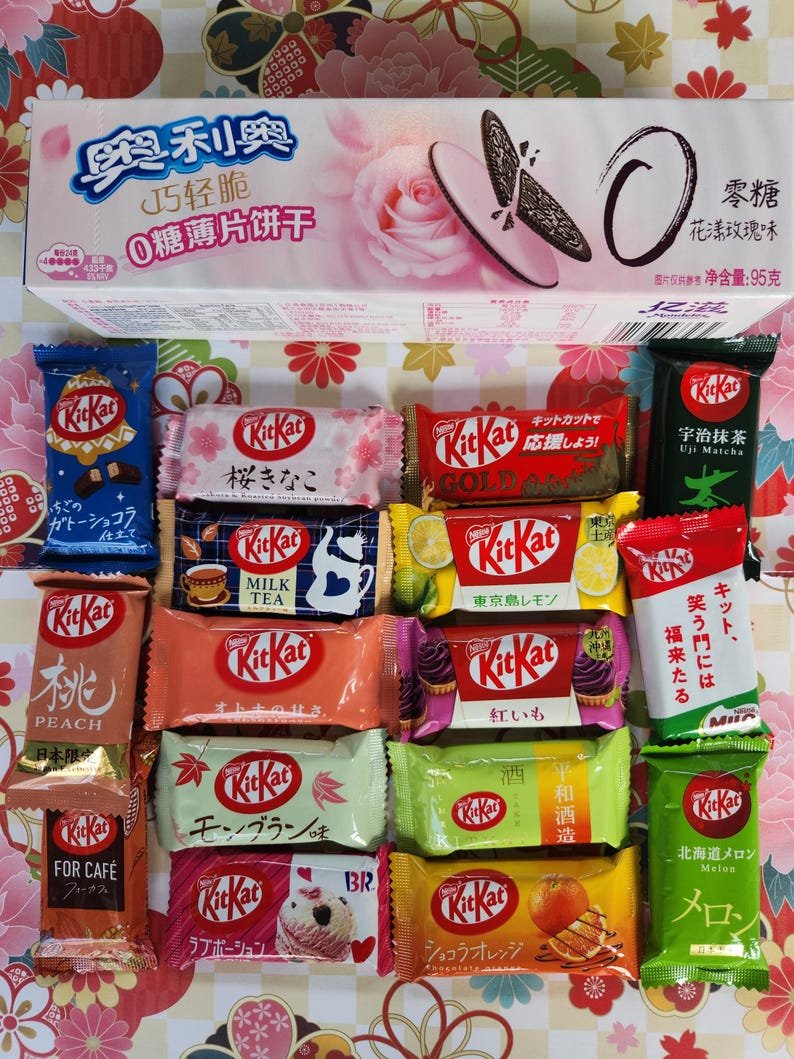 The Japanese kit kats are ALL DIFFERENT Unique flavors and pre-set. The Oreo flavors will be chosen at random unless you message us your preference beforehand Please note,sometimes it will still be chosen at random if we don’t currently have in stock.