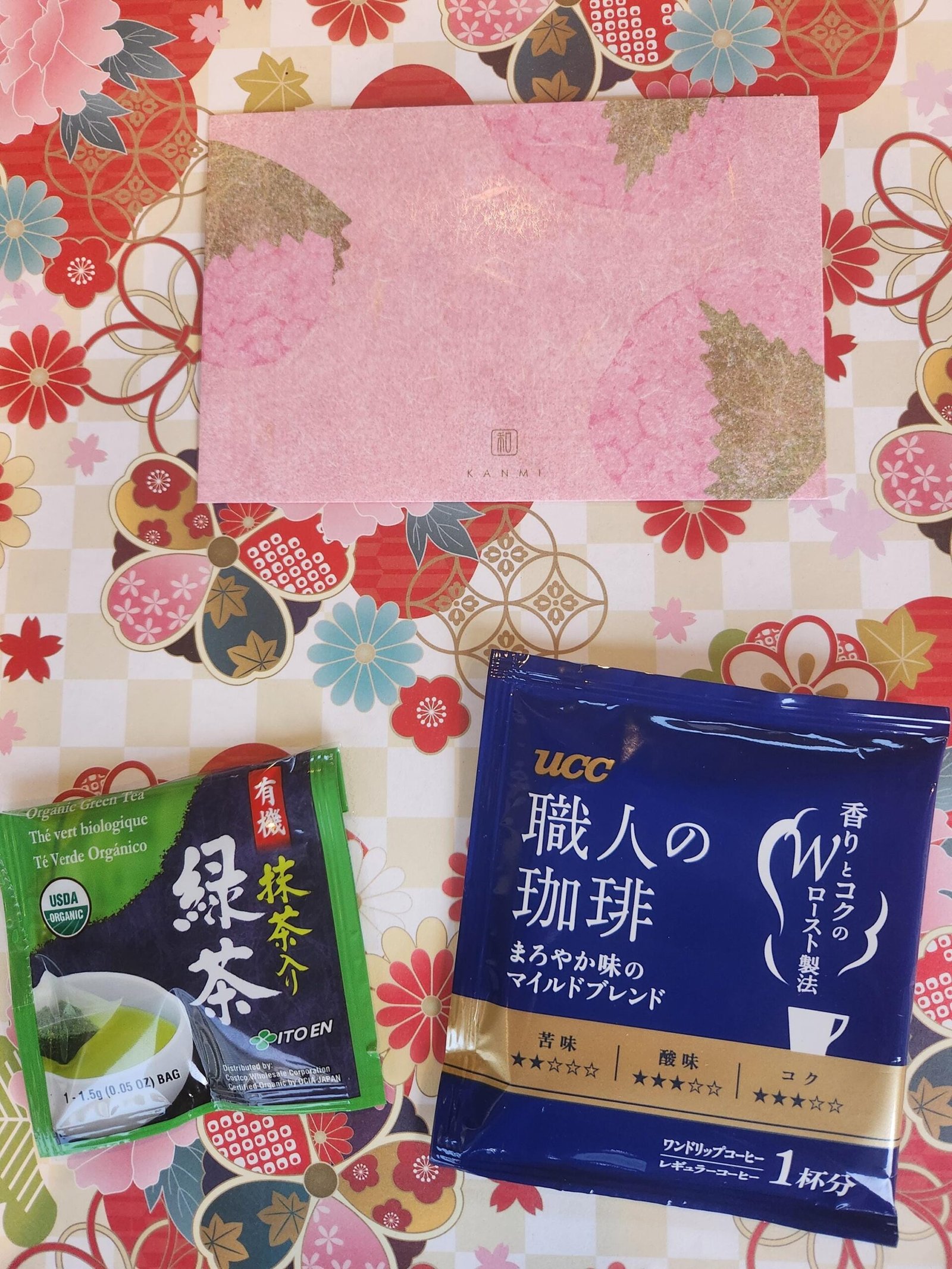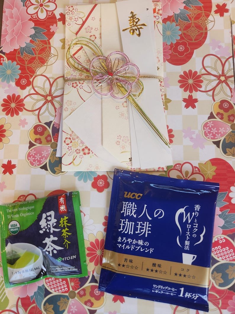 The washi paper envelope with hand-written message/2 random japanese matcha/coffee packs are an additional package