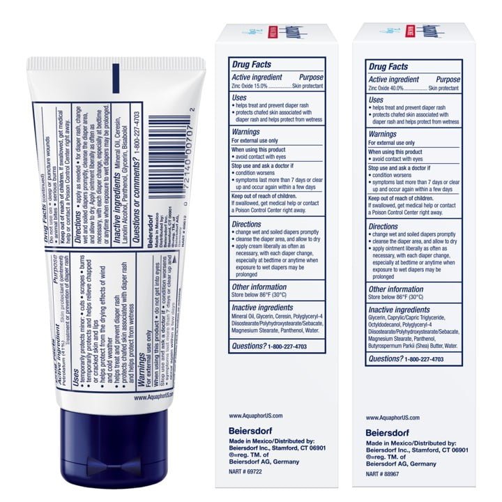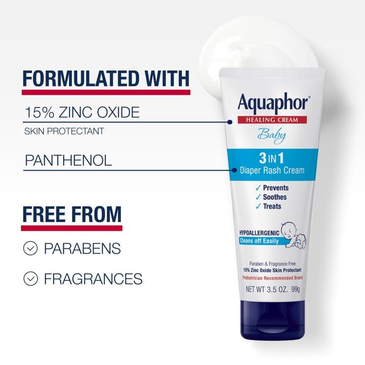 - One 1.75 oz Aquaphor Healing Ointment, one 3.5 oz Diaper Rash Cream and one 3.5 oz Diaper Rash Paste, diaper essentials