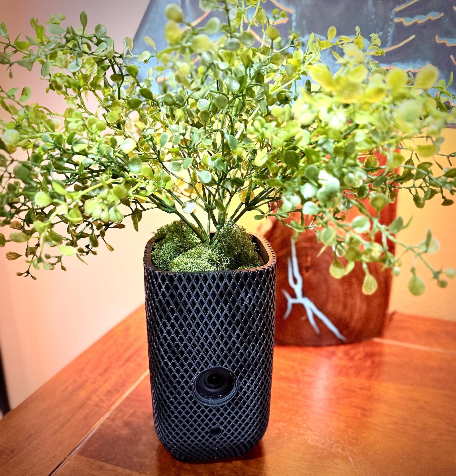 Keep your Arlo Pro 4-5 Security Camera protected in style with this custom-designed woven pot housing. Designed to complement your home or office decor, this unique cover adds a decorative touch while maintaining full camera functionality.