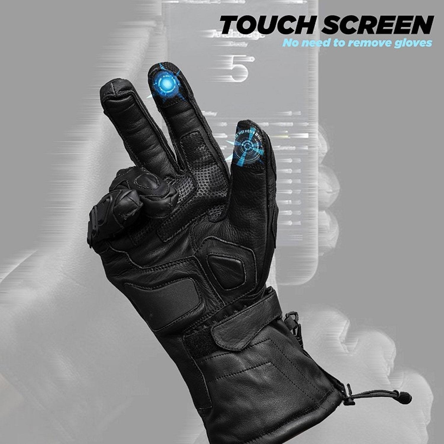 ATA Blackops Winter Motorcycle Gloves, Waterproof Leather, Touchscreen Compatible, CE Certified, Warm Biker Gloves for Touring ATV Snow