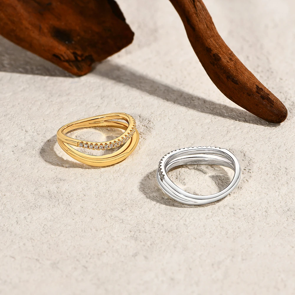 ATTAGEMS Simple Full Moissanite Ring DVVS1 Original s925 Sterling Silver Engagement Wavy Band for Women Cocktail Party Jewelry