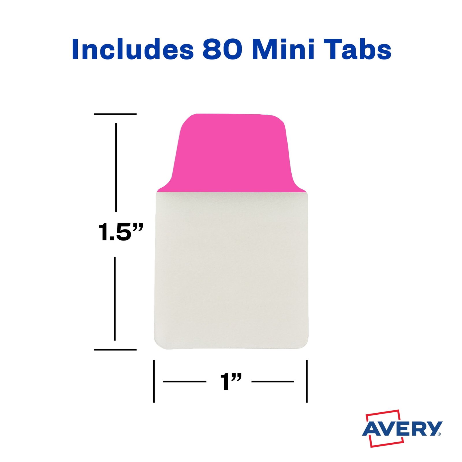 Avery Mini Ultra Tabs are durable tabs that make indexing, flagging and referencing documents quick and easy with a smaller size that won’t get in the way of text or each other. These sturdy tabs are writable on both sides and the clear adhesive body does not interfere with any text or graphics underneath. Get crisp and clear writing on the smudge free* page markers with most pens, pencils, markers and highlighters. The repositionable tabs stick securely to any page, yet remove easily for multiple uses. Use at home, in the office or at school as page flags, bible tabs, file folder tabs, divider tabs and more! The pack of 80 neon color tabs includes 20 pink, 20 yellow, 20 green and 20 orange 1″ x 1.5″ tabs. *Ink dry times may vary. Tab may lift some inks. Test before applying.