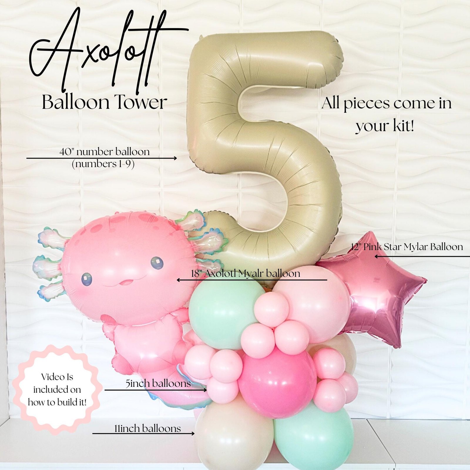 Axolotl Balloon – Axolotl Birthday – Axolotl Balloon Tower – Balloon tower – Balloons – Birthday Balloons – Under The Seat Birthday –