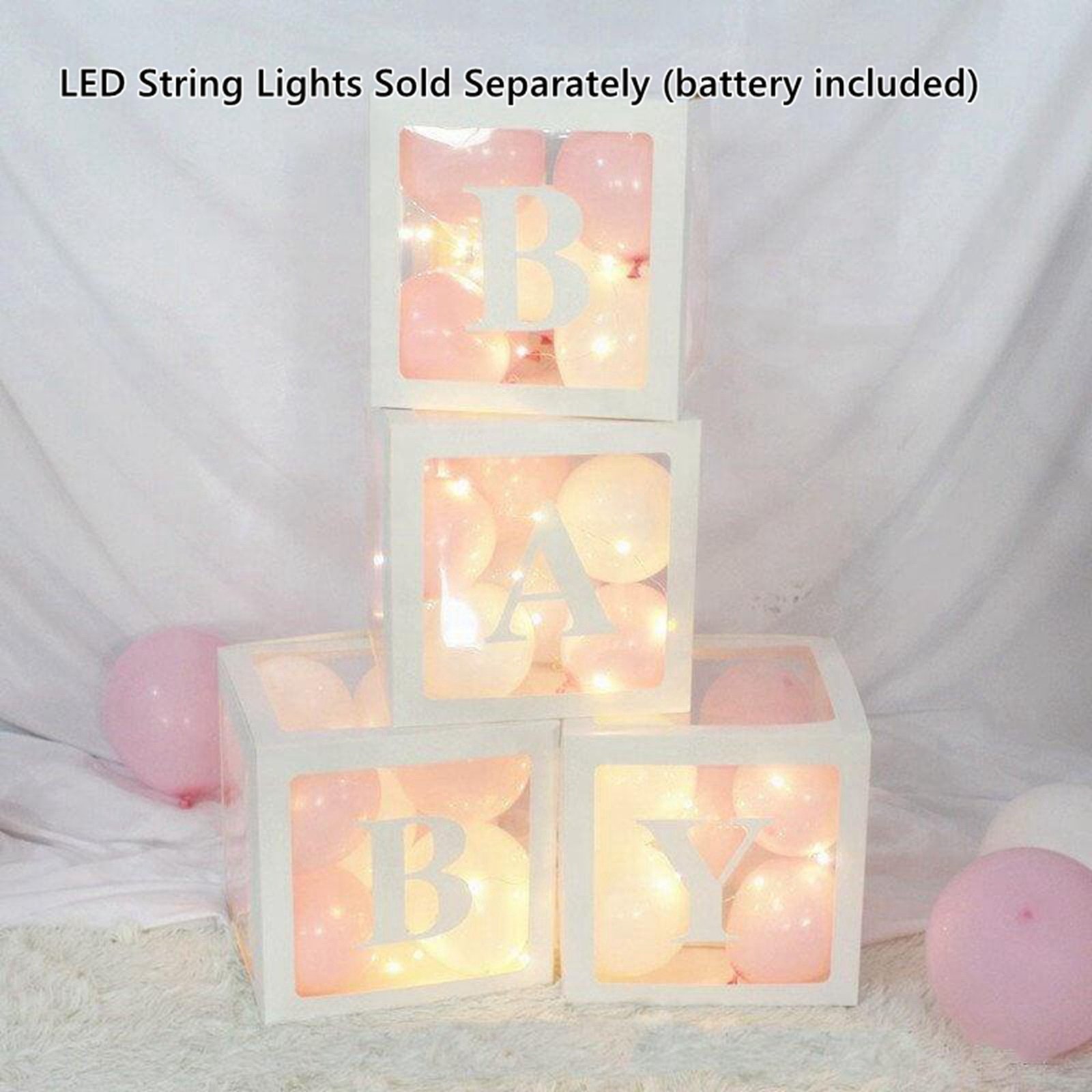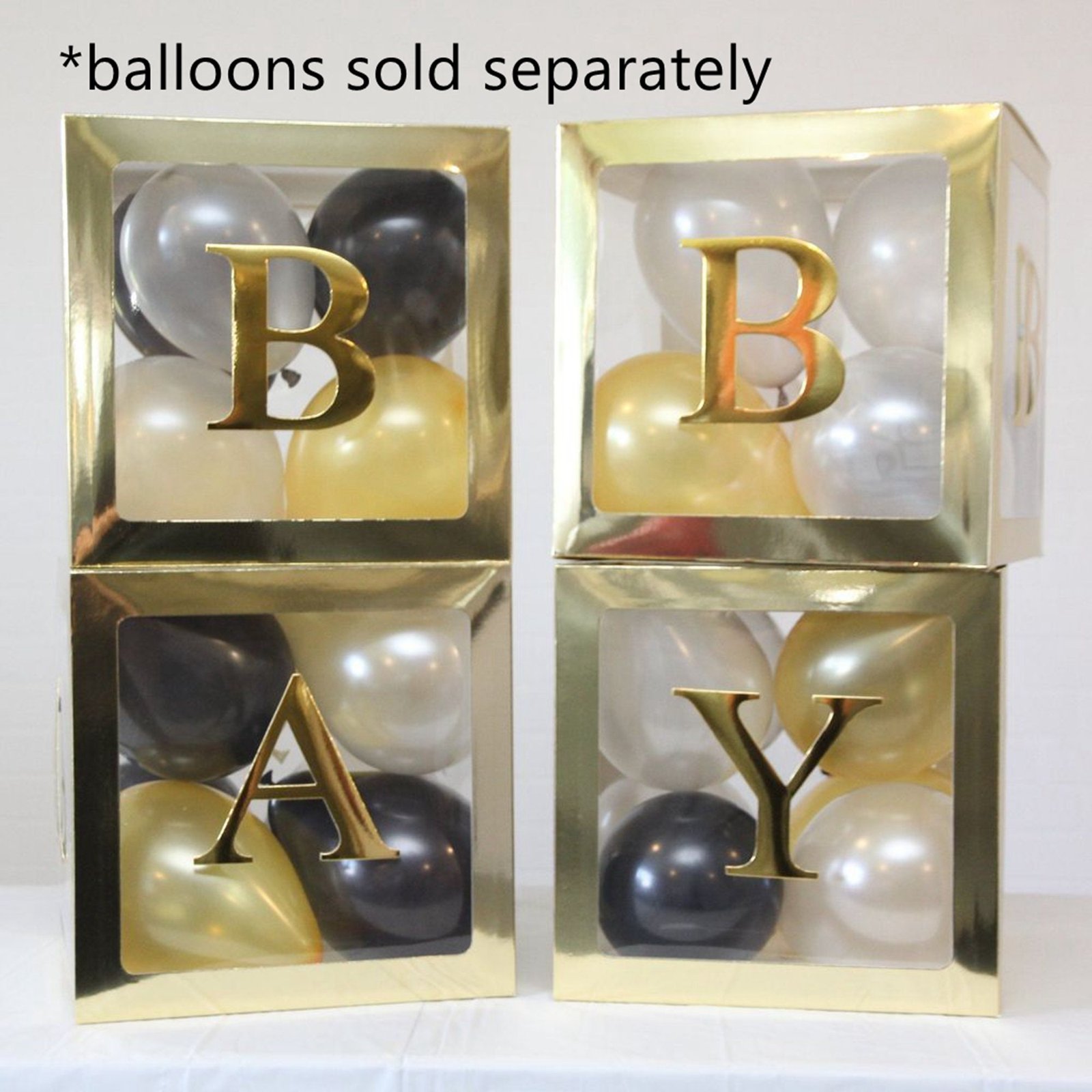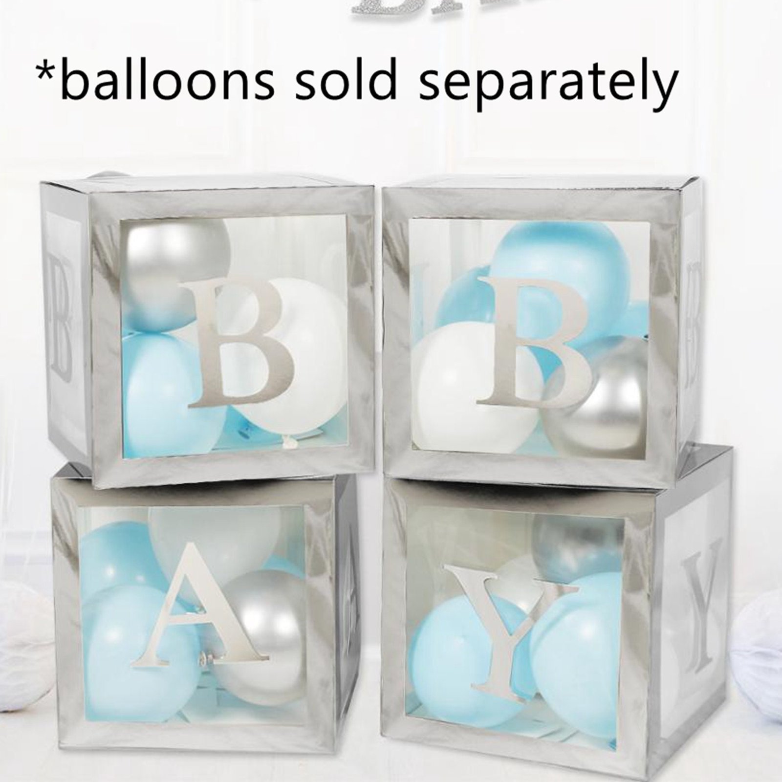 BABY Balloons Clear Box Cube Gift Boxes Birthday Baby Shower Party 4pcs Set