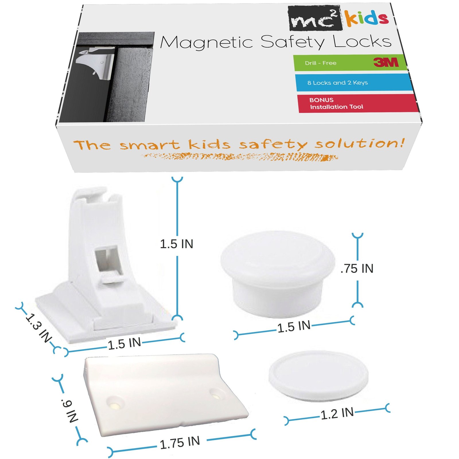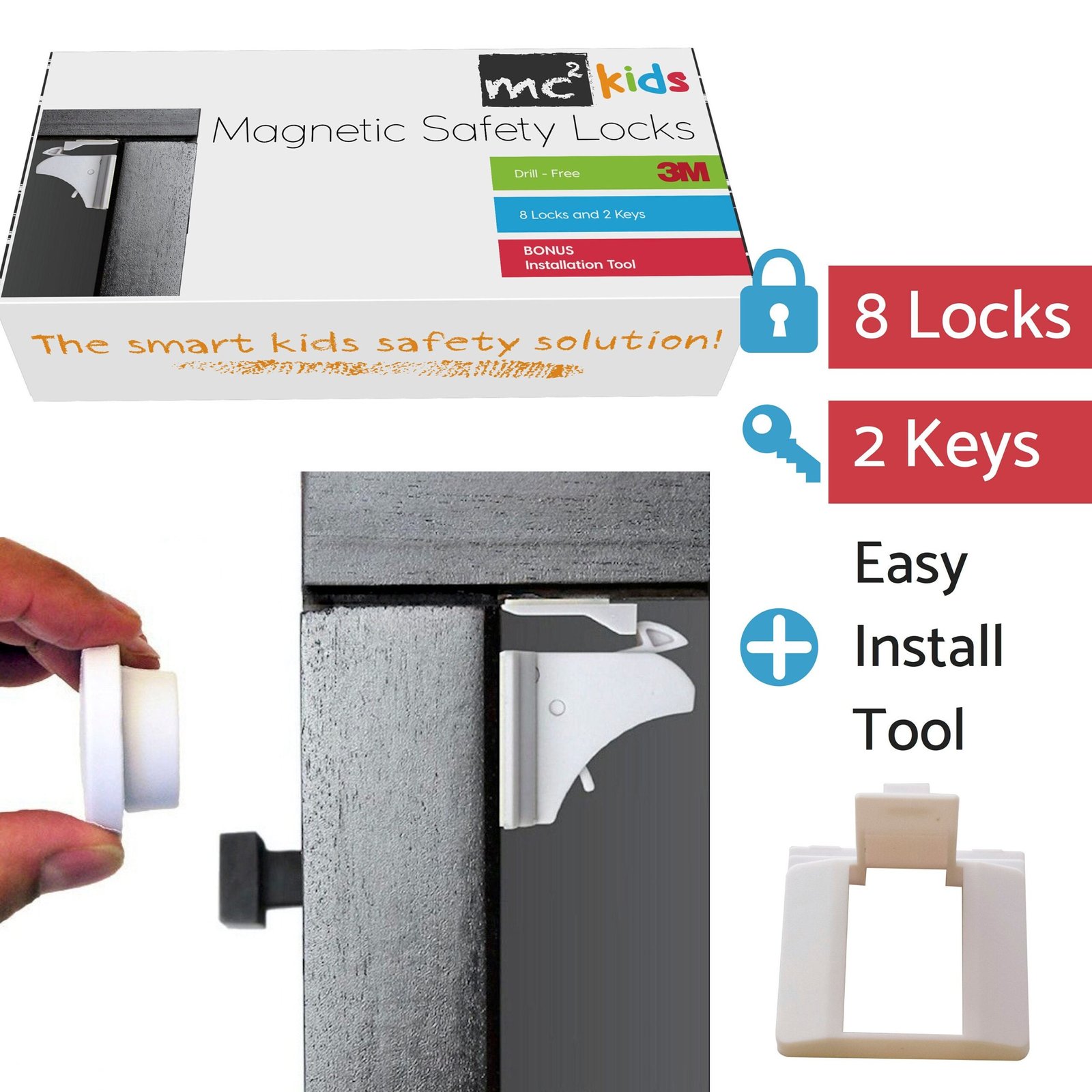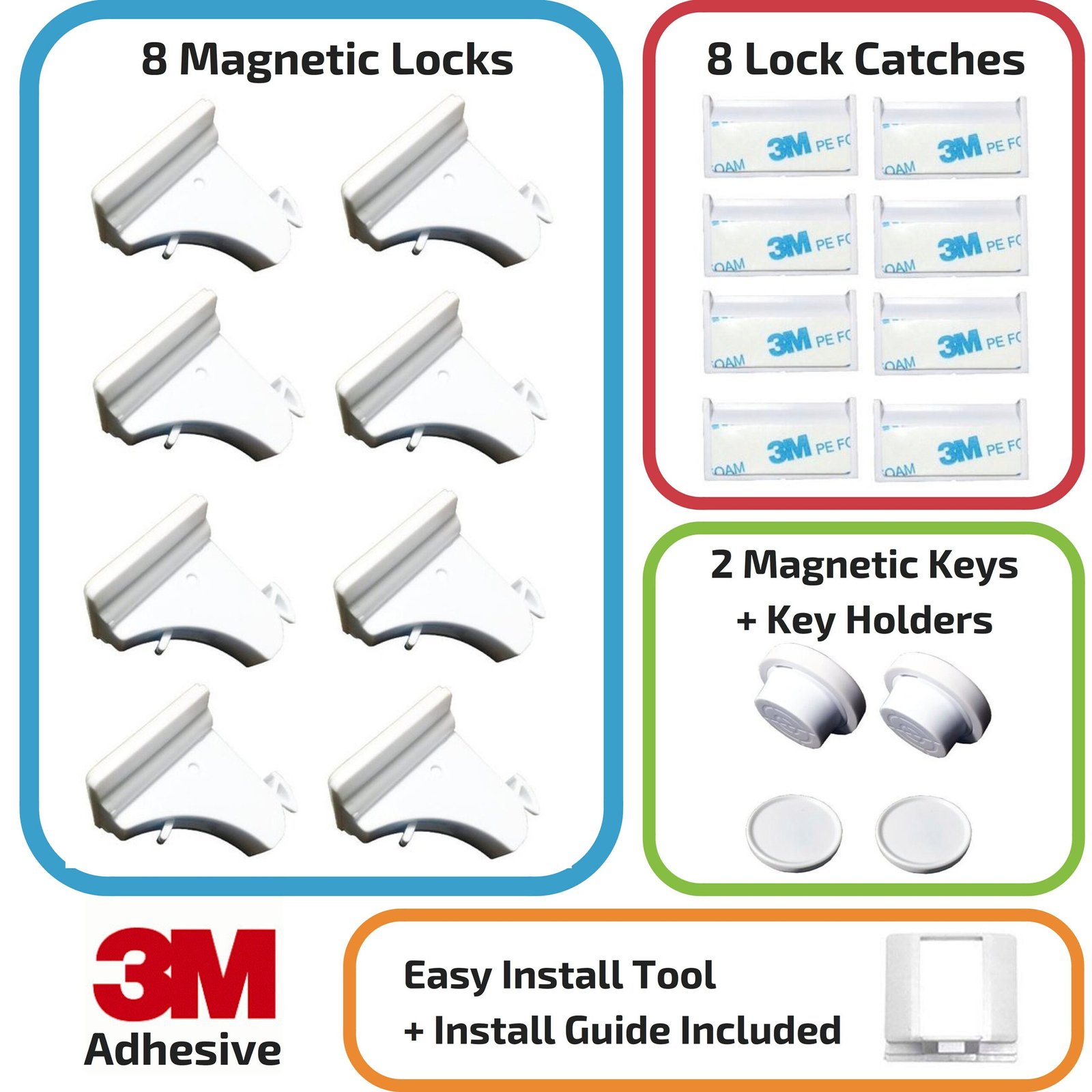 Baby Safety 8 Locks 2 Magnetic Keys Children Proof Cabinet Latches No Drill